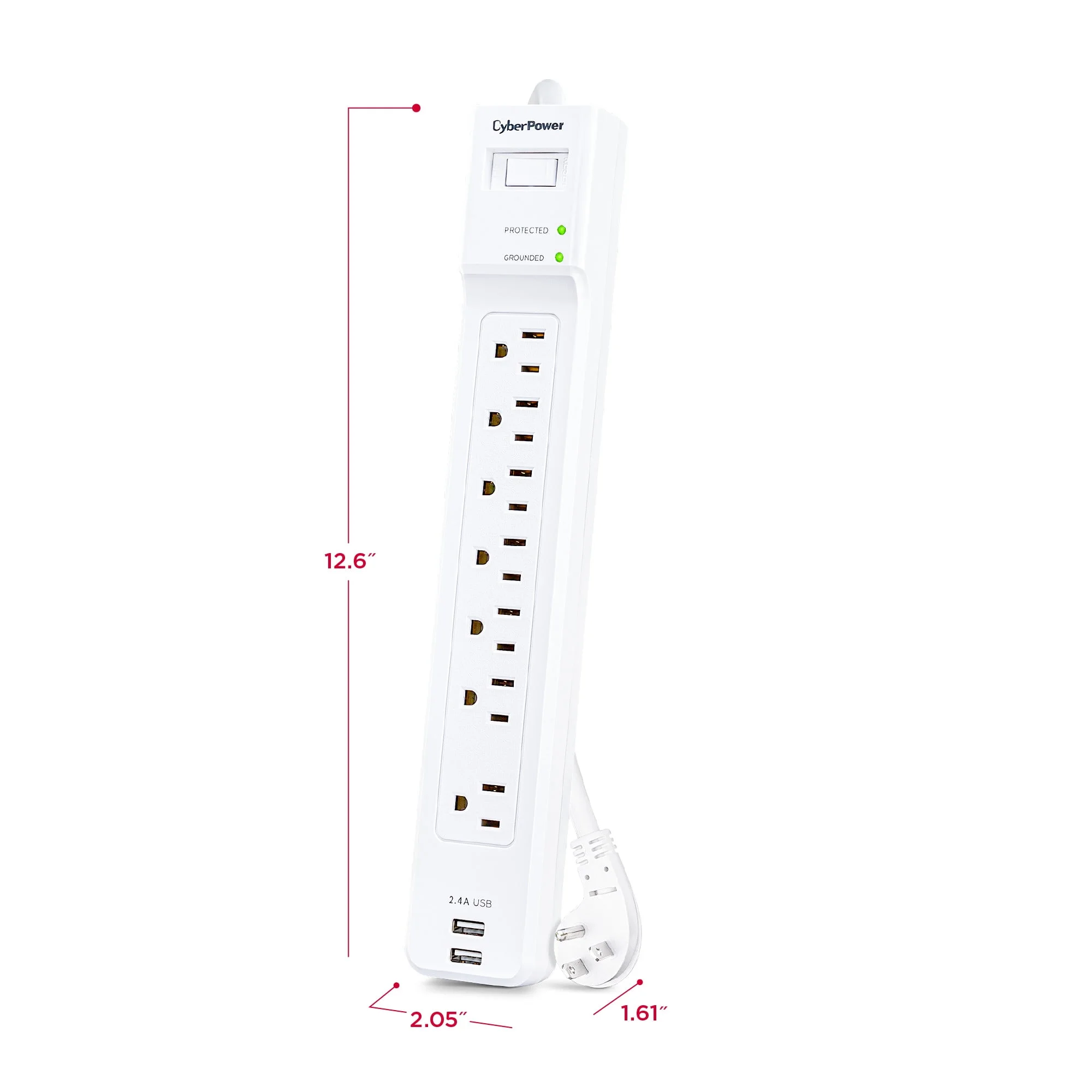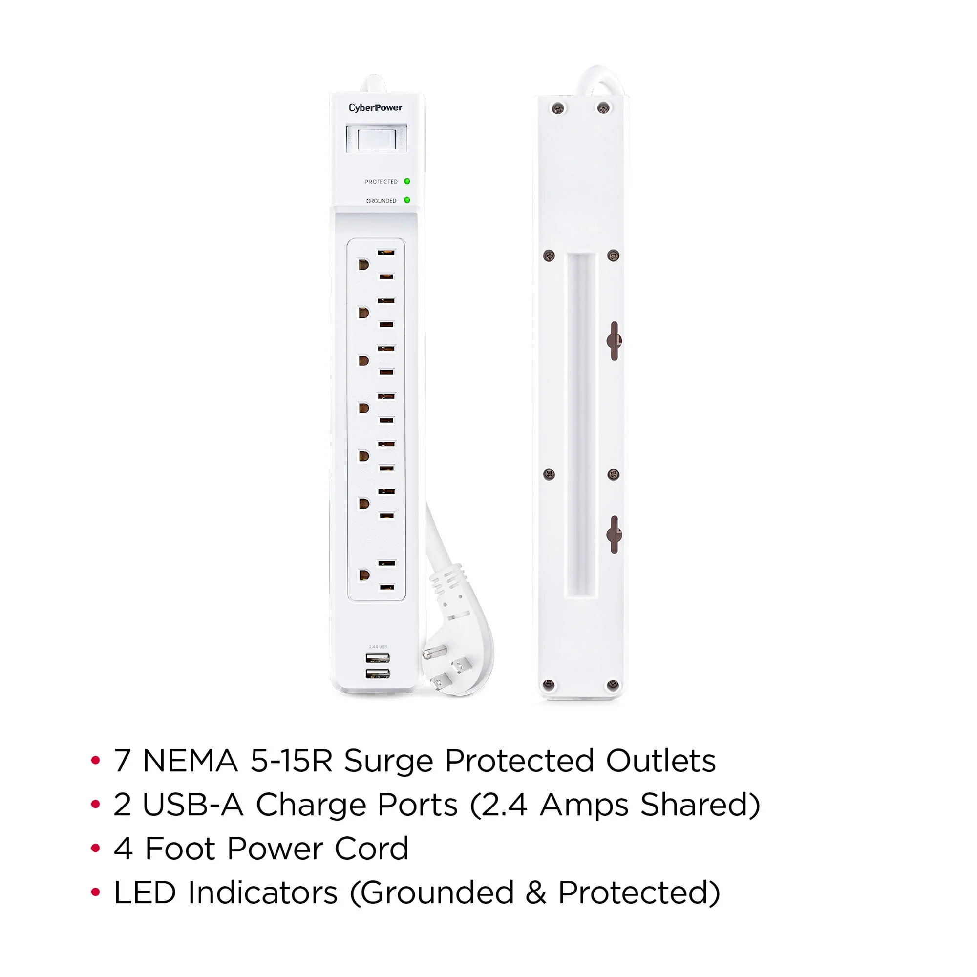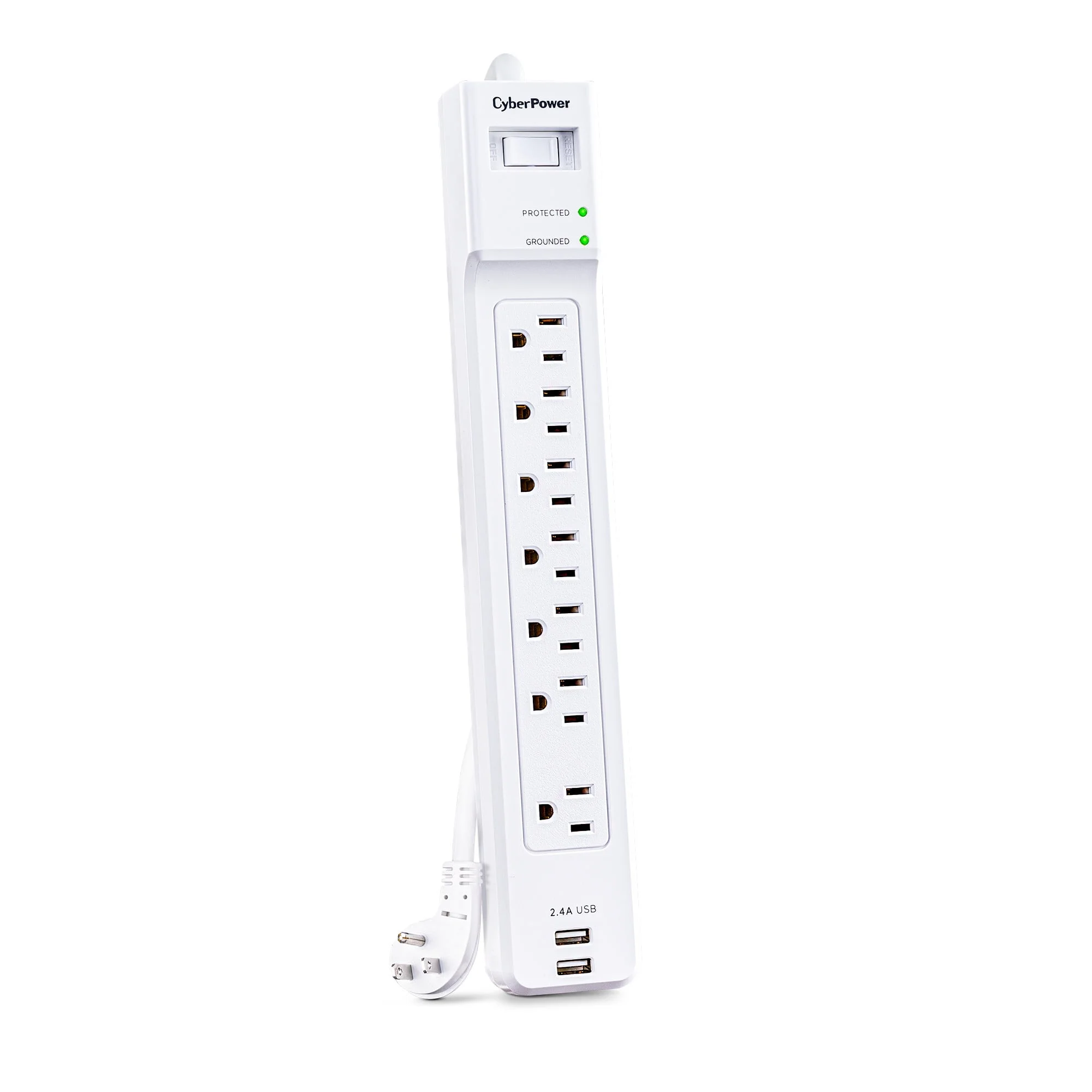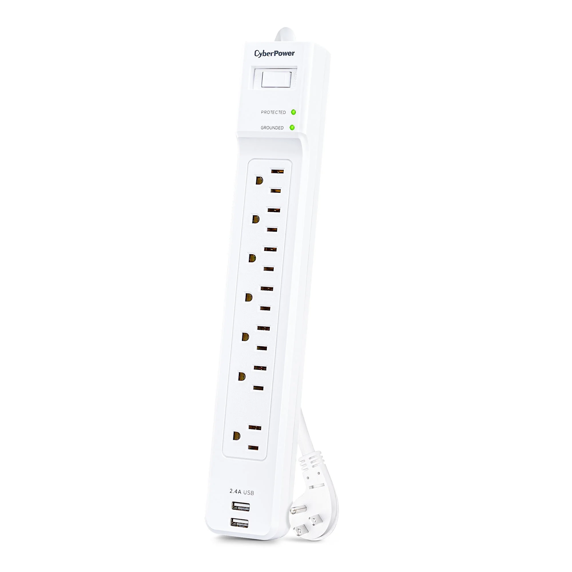 Protect your electronics with the CyberPower 7 Outlet Surge Protector, designed to safeguard your devices from power surges and spikes. With a compact 4-foot cord, it provides flexible placement options while delivering 2000 joules of surge protection.