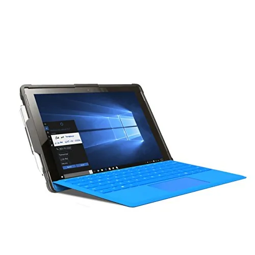 This sleek, portable security enclosure offers exceptional functionality while protecting your Surface Pro 4 from theft, making it an invaluable accessory for conference rooms, classrooms, restaurants, and offices. The streamlined case features two nano composite cooling pads to reduce heat, a built-in folding kickstand for easy tabletop setup, a convenient stylus holder grip, plus openings for all cameras, ports, and jacks. Your tablet stays protected with the K-slot style galvanized steel anti-theft cable, which attaches easily to any permanent fixture and unlocks with a set of keys. Features: Case includes openings for all cameras, ports, and jacks. Built-in folding kickstand. Two nano composite cooling pads reduce heat. Stylus holder grip on case. Protects against theft with galvanized steel cable. Perfect for conference rooms, classrooms, restaurants, and offices. Compatible with Surface Pro 4; compatible with credit card readers.