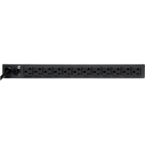 - Corded AC power distribution unit with 20 amp capacity and 13 AC receptacles - Versatile all-metal cabinet with detachable mounting flanges allows wallmount, under-counter and 19 inch rackmount mounting in both 1U or zero-U formats - Detachable flanges with pre-punched access holes and adjustable depth channels allow user configuration in dozens of potential mounting schemes, including zero-U rackmount capability in the cable management area or other available space within a rack enclosure - Unfiltered electrical pass-through reliably distributes alternate waveform AC power from UPS or generator to supported equipment - 13 NEMA5-15/20R output receptacles accept common NEMA5-15 and 5-20 equipment plugs - 15 foot AC cord NEMA5-20P plug connection - Switch-free design prevents the potential for accidental shutoff of connected loads - 20 amp electrical capacity with circuit breaker - 120V AC, 50/60Hz electrical compatibility System overview - 1U rackmount, 0U vertical rackmount, wallmount or under-counter Power Distribution Unit, 20A capacity Voltage compatibility - 120V AC Frequency compatibility - 50/60 Hz Output nominal voltage - 120V AC Outlet quantity / type - 13 NEMA 5-15R / NEMA 5-20R (1 front / 12 rear) Overload protection - 20A Input connection type - NEMA 5-20P Input cord length - 15 Recommended electrical service - 20A 120V Switches - No power switch Unit Dimensions (HWD/in) - 1.75 (1U) x 17.5 x 4.5