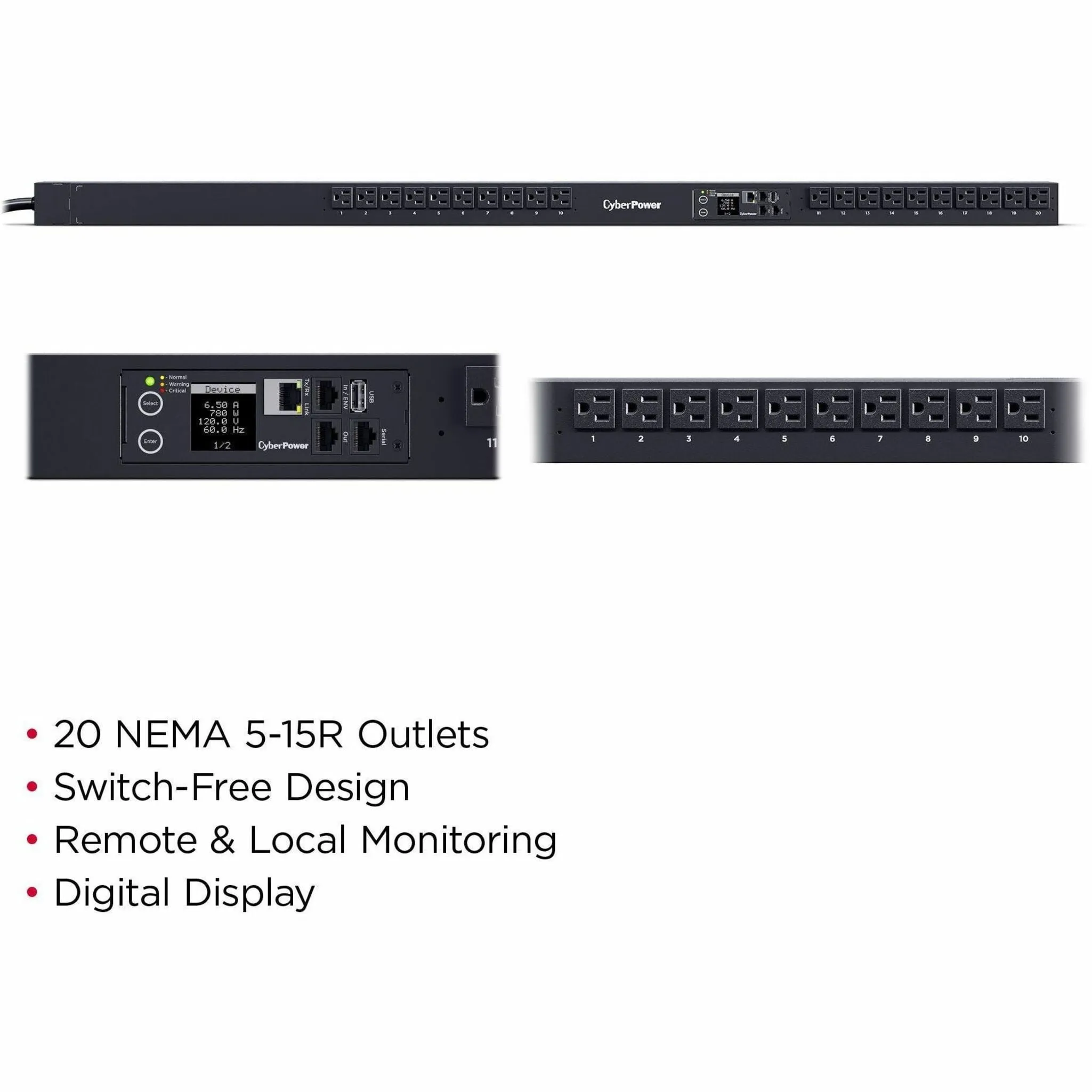 The CYBERPOWER 16-Outlet Vertical PDU is designed to efficiently distribute power in data centers and network closets. Operating at 100-120V and 15A, this power distribution unit ensures reliable performance with multiple outlets to accommodate various devices.
