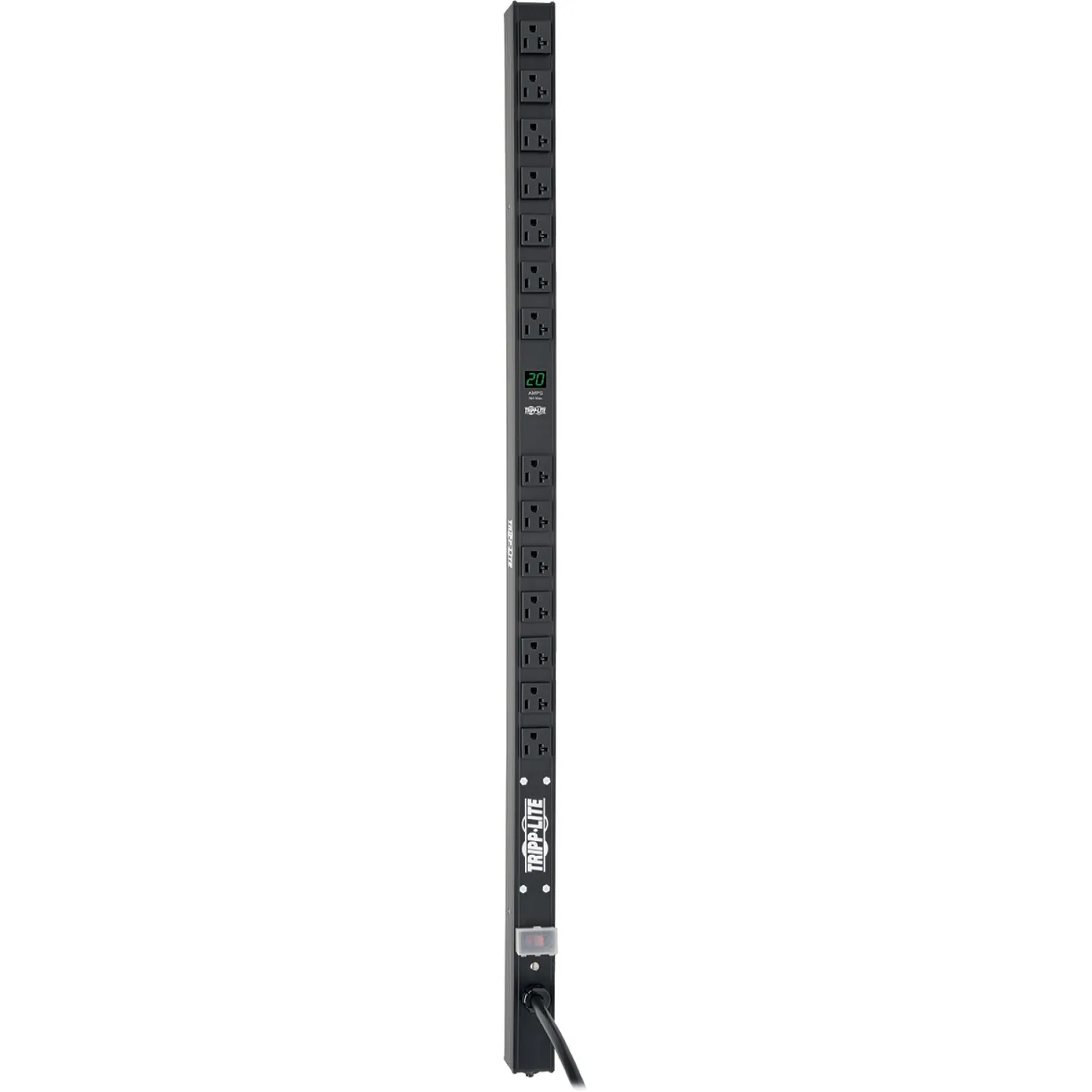 General InformationTripp Lite single phase Metered PDU / Power Distribution Units offer real-time local reporting of load level in amps via built-in digital display. Enables visual monitoring of PDU load levels to prevent overloads as additional equipment is added. Offers reliable rackmount multi-outlet power distribution from any protected UPS, generator or mains input power source. High quality design includes rugged all-metal housing and secure rackmount installation with included mounting accessories.Technical InformationInput Receptacles: NEMA L5-20POutput Receptacles: 14 x NEMA 5-15/20RPower DescriptionInput Voltage: 120 V ACOutput Voltage: 120 V ACPower Rating (Watt): 2000 WInput Current: 20 APhysical CharacteristicsMounting Orientation: VerticalPlacement: RackRack Height: 0UHeight: 36"Width: 1.8"Depth: 1.3"Weight (Approximate): 3.20 lbMiscellaneousPackage Contents: PDUMV20-36 14-Outlets PDU1 x L5-20P to 5-20P Plug AdapterMounting HardwareSpare Mounting ButtonsInstruction Manual with Warranty InformationEnvironmentally Friendly: YesEnvironmental Certification: RoHSWarrantyLimited Warranty: 2 Year