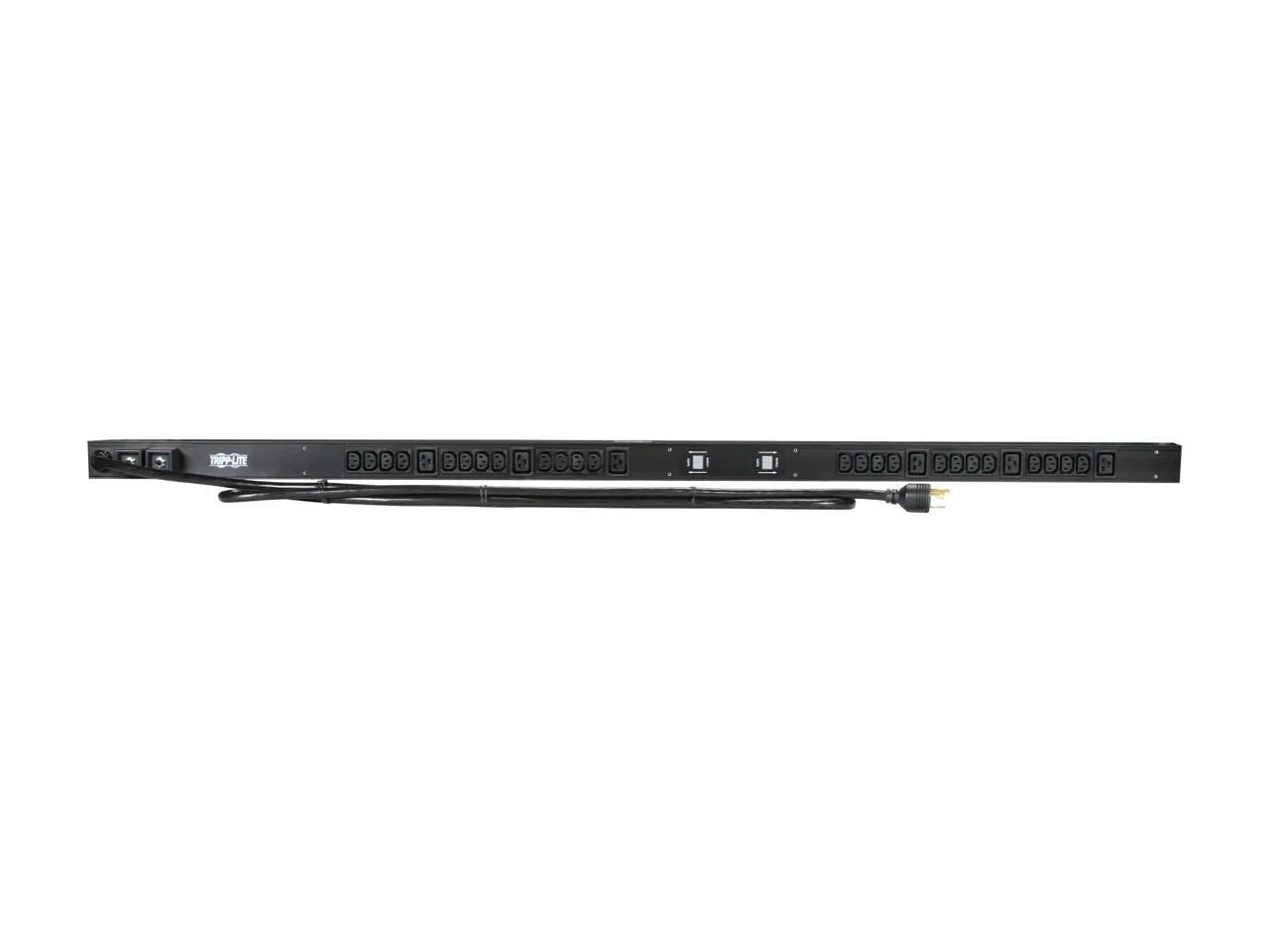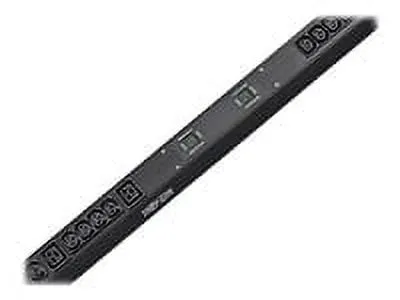 Outlets are arranged in two separately breakered load banks. The top 15A breaker covers outlets on the upper half, the bottom 15A breaker covers outlets on the lower half of the PDU. Each breakered bank covers 12 C13 and 3 C19 outlets. Outlet quantity / type