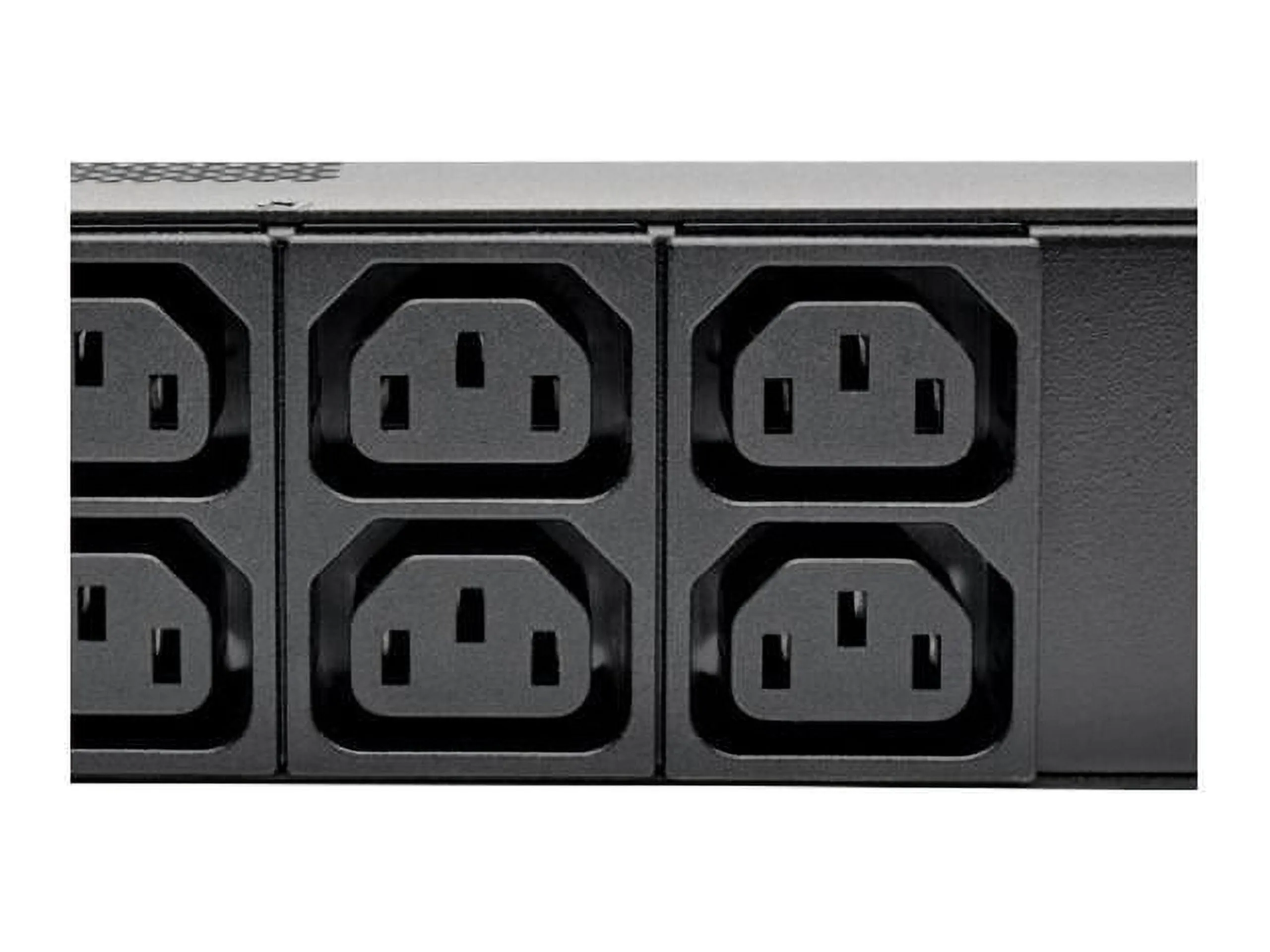 Tripp Lite PDU Metered 208/240V C13/C19 - Digital Meters Help Prevent Overloads, Dual digital ammeters report real-time output current in amps, Visual monitoring of PDU load level prevents overloading as more equipment is connected Distributes Plenty of Single-Phase Power 30A 208/240V 5.8kW metered PDU (agency derated to 24A continuous)r Dual load banks with separate 20A circuit breakers and digital ammeters, 48 outlets, 24 per bank (4 C19 and 20 C13) distribute single-phase power to connected equipment, Special guards prevent breakers from accidentally tripping, Each bank is color-coded and labeled for convenient identificationConnects to AC Power Source, NEMA L6-30P input plug with 10 ft. (3 m) cord for easy connection to main power source, generator or protected UPS, Included plug-lock inserts ensure components remain connected and powered. Included ground screw for equipment requiring chassis groundEasy to Mount With or Without Tools. Ready for immediate toolless 0U installation using preinstalled 9 mm mounting buttons (spare 2.9 mm and 4.6 mm buttons included) Nut-and-bolt vertical installation possible with included mounting hardware. Use included PDUMVROTATEBRKT mounting accessory for installation with outlets facing rearTAA-Compliant. Compliant with the Federal Trade Agreements Act (TAA) for GSA Schedule purchases.