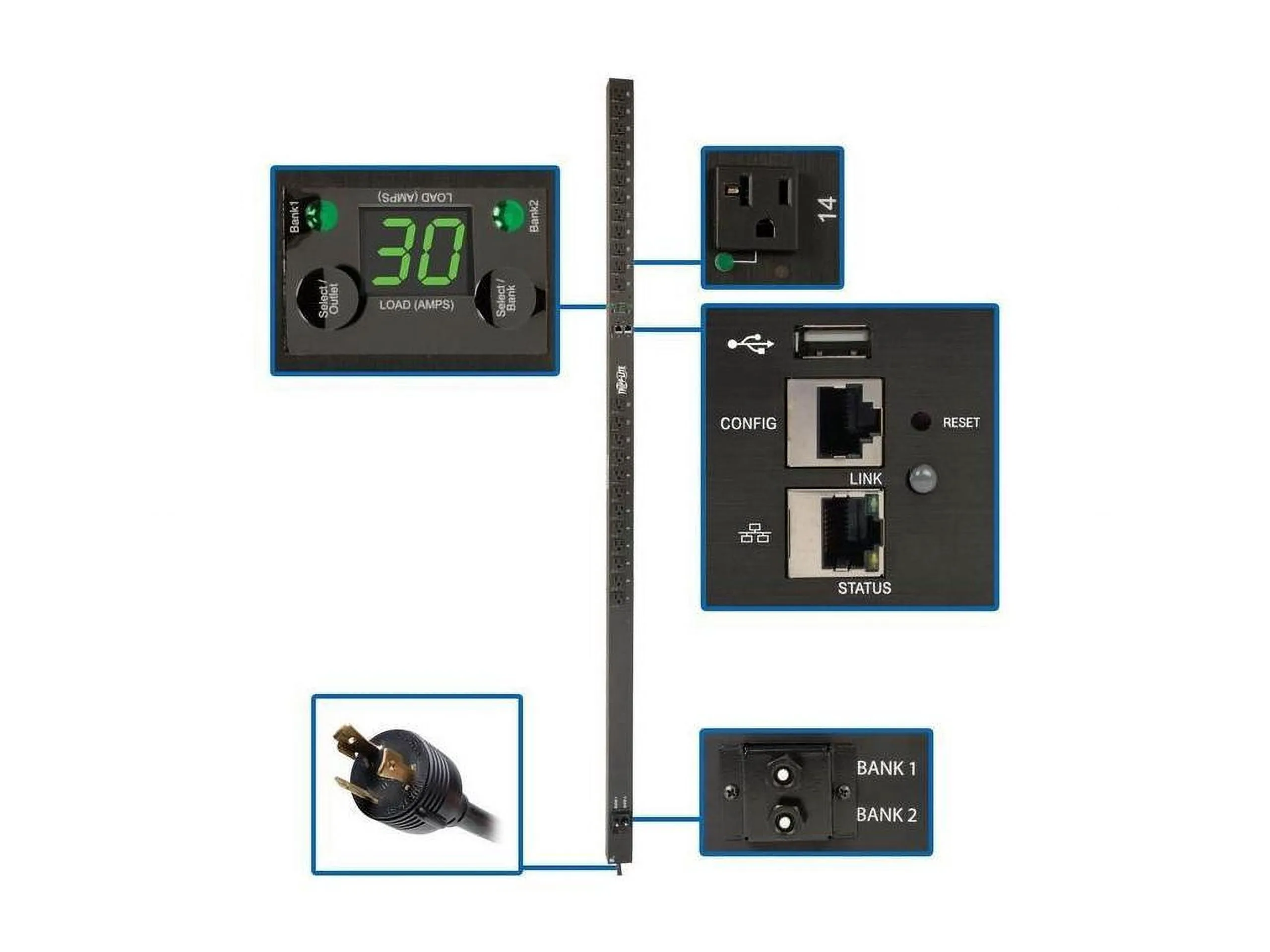 ETS (24 NEMA 5-15/20R), L5-30P PLUG, 0U, TAA - 2-YEAR LIMITED WARRANTY