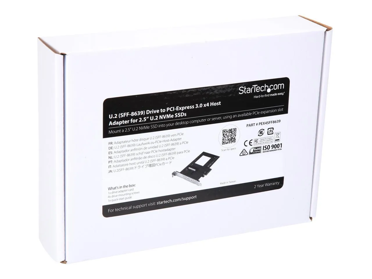 StarTech PEX4SFF8639 StarTech.com U.2 to PCIe Adapter - x4 PCIe - For 2.5" U.2 NVMe SSD - SFF-8639 PCIe Adapter - U.2 SSD - PCIe SSD - U.2 drive