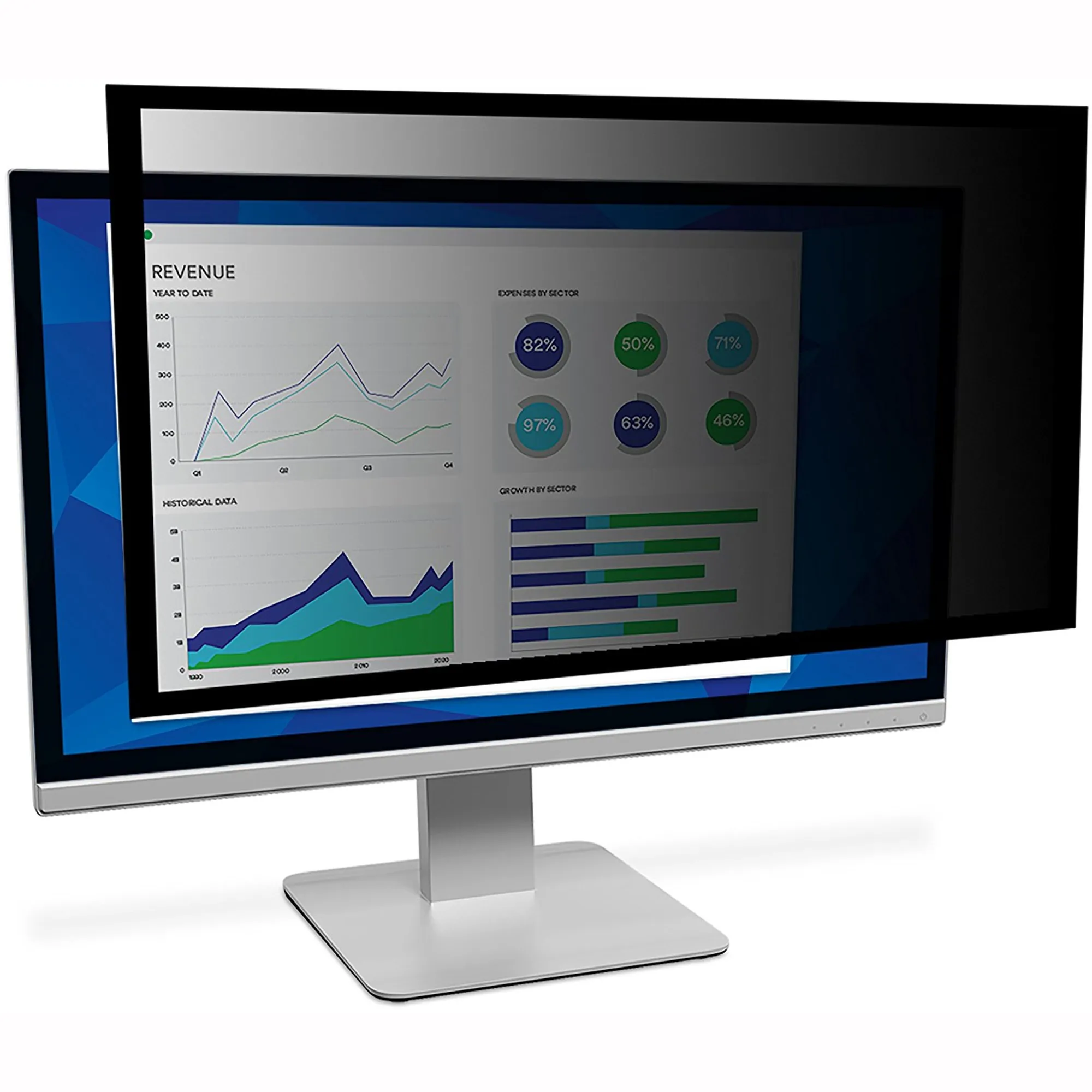 Framed privacy filter works in your 27" wide-screen monitor to help protect your screen from everyday scratches and dust, and help keep the information displayed on them private. Advanced Microlouver technology delivers effective "black out" privacy from side views outside the 60-degree viewing angle. You get crisp image clarity on your display while visual hackers with side views are kept in the dark. For collaboration and sharing the screen, this robust, framed privacy filter is easily removed. Wide-screen filter reduces 35 percent of blue light transmission from the display and helps reduce reflections so you see your screen clearly with pristine image clarity. Scratch-resistant privacy filter with 16:9 aspect ratio attaches in two ways: hanger arms or Command Strips. Viewing dimensions are 24-3/16" x 13-7/8" (614mm x 353mm).