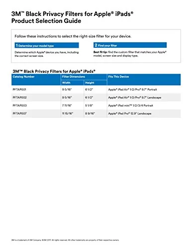 3M Black Privacy Filters for tablets deliver world-class effective "black out" privacy from side views. These ultra-thin privacy filters are optimized for the highest degree of touch compatibility. Custom-cut to fit your screen, enjoy incredible image clarity and a smooth, satin-like matte finish that helps hide fingerprints. From 3M, a leader in touchscreen privacy.