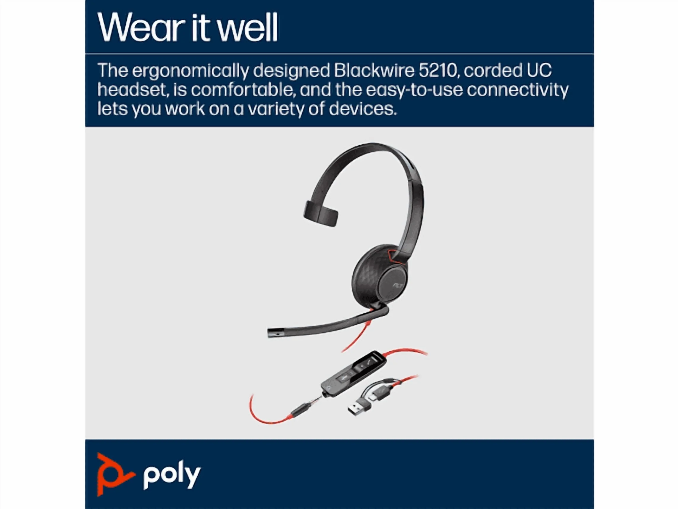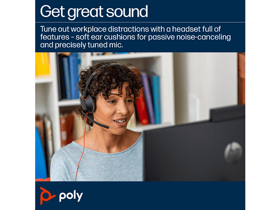 - Audio quality - Premium PC wideband audio with noise-canceling microphone and Digital Signal Processing (DSP) for a more natural voice sound.