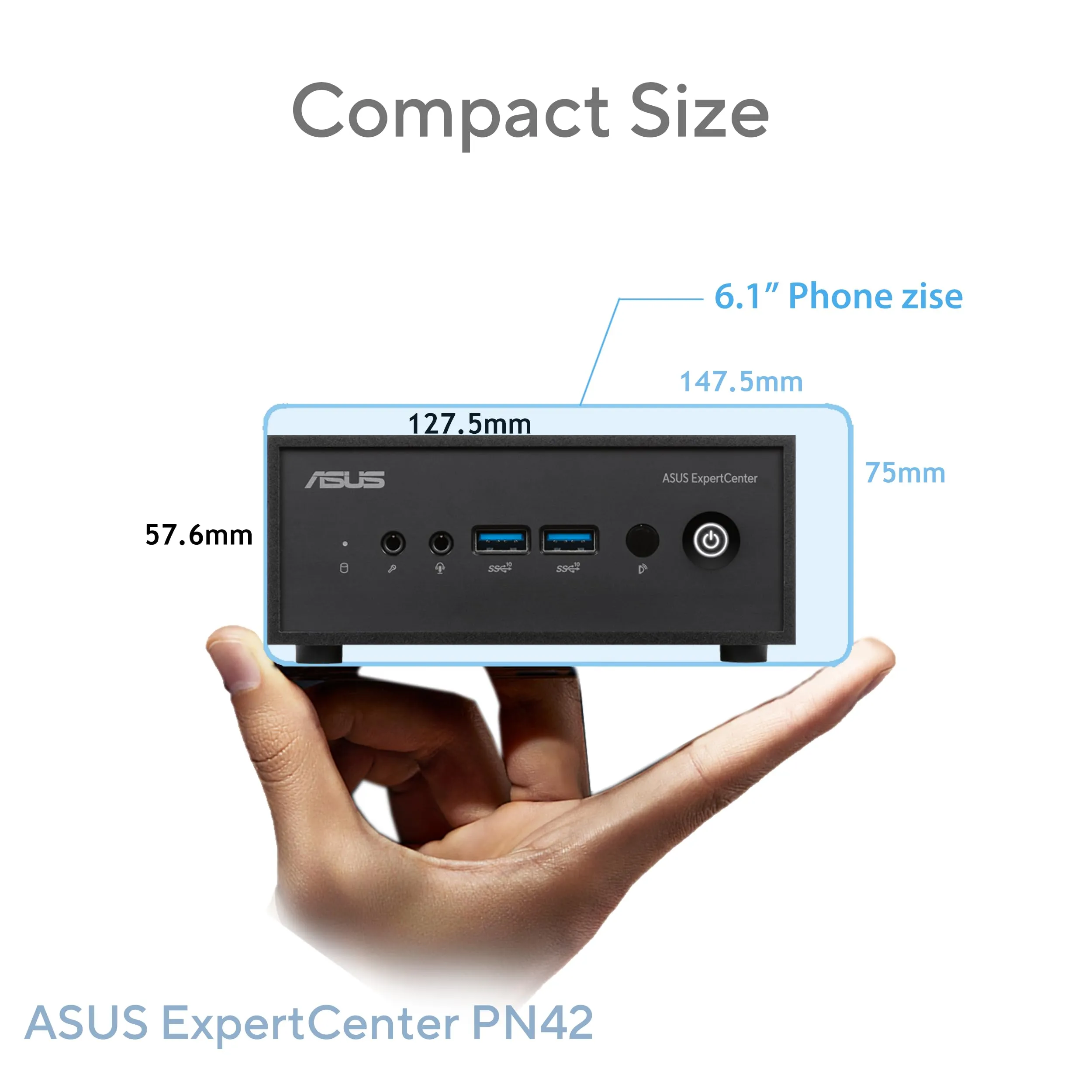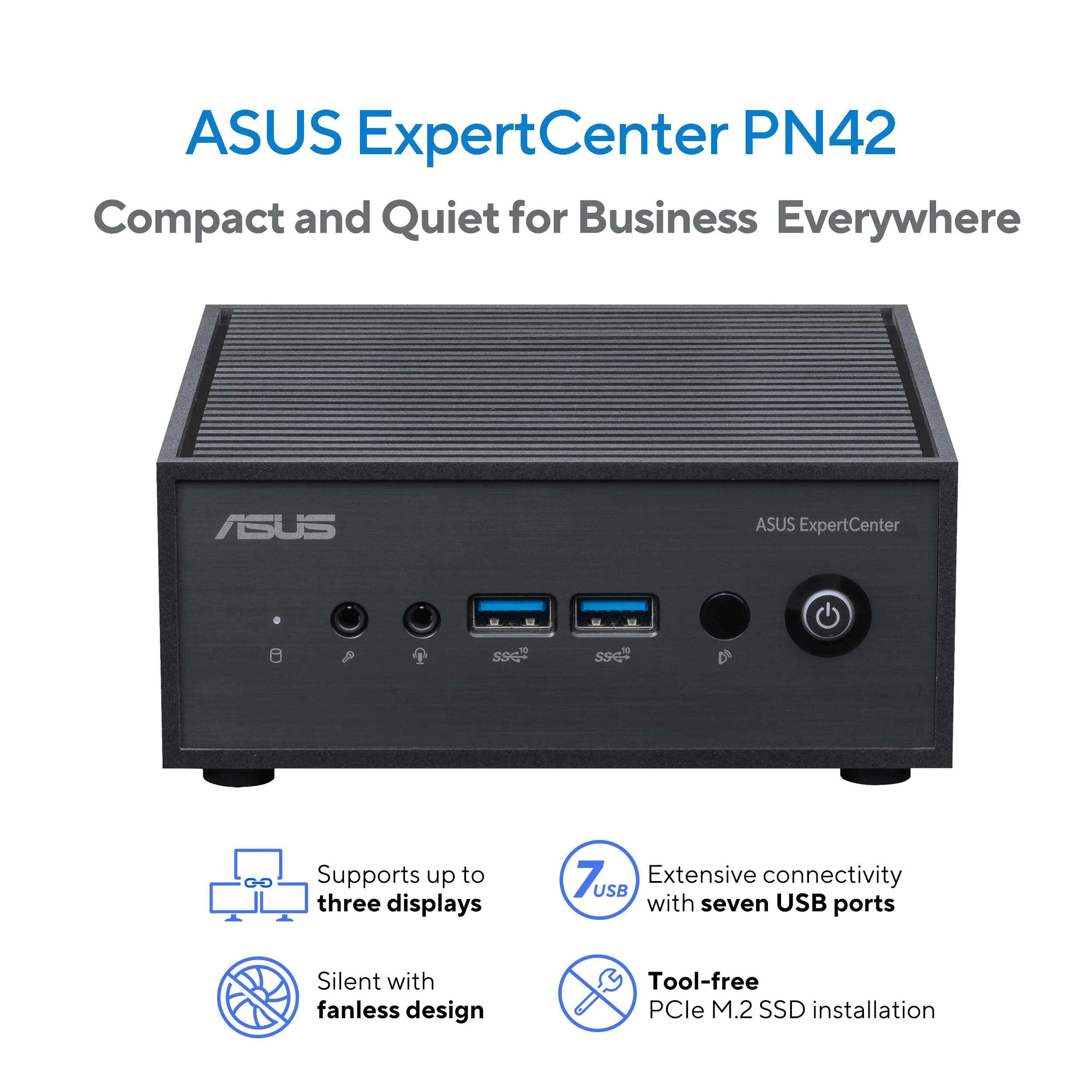 The ASUS ExpertCenter PN42 is a fanless Mini PC designed for efficiency and performance. Powered by the Intel 12th generation Quad-Core N100 processor, this barebone PC supports dual 4K displays, making it perfect for multitasking and graphical applications.