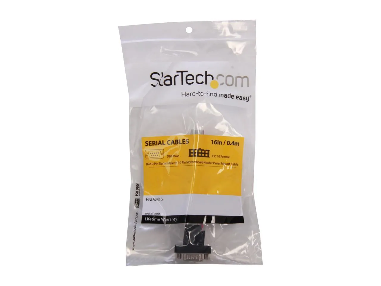 Connect your motherboard with ease using the StarTech.com 9 Pin Serial Male to 10 Pin Motherboard Header Panel Mount Cable. This high-quality cable provides a reliable connection for serial communication, making it an essential component for your PC setup.