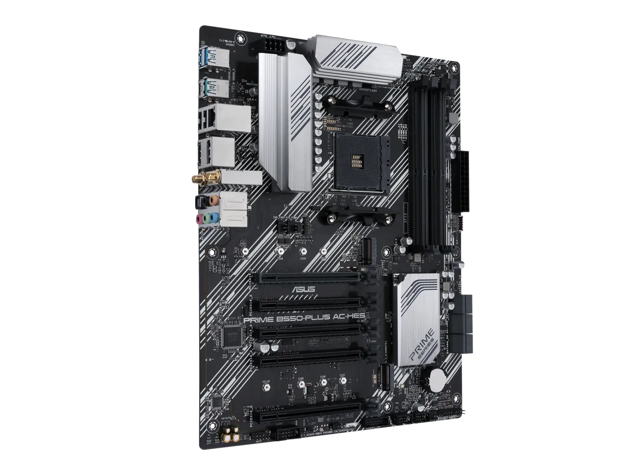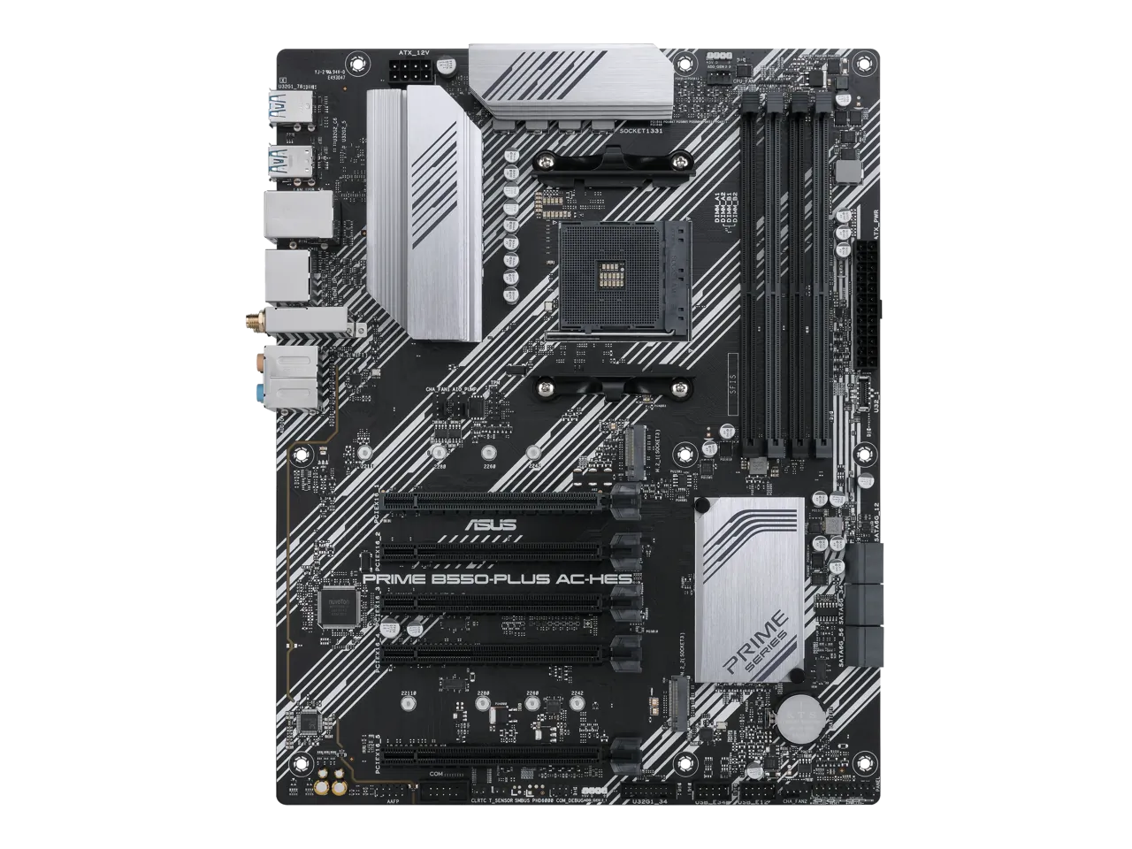The ASUS Prime B550-PLUS AC is a feature-rich ATX motherboard designed for AMD Ryzen 3000 processors. It supports dual M.2 slots and PCIe 4.0 for high-speed data transfer. With integrated WIFI 5 and 1 Gb Ethernet, connectivity is seamless. The board includes DisplayPort and HDMI outputs, SATA 6 Gbps support, and USB 3.2 Gen 2 Type-C for modern peripherals.