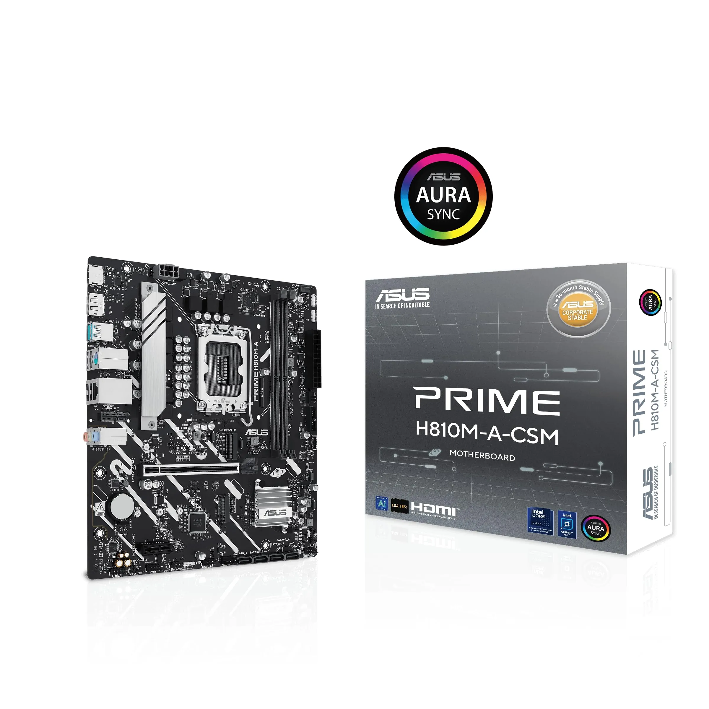 The ASUS PRIME H810M-A-CSM motherboard is designed for high-performance computing with support for DDR5 memory and PCIe 4.0. It features dual M.2 slots for ultra-fast SSDs and HDMI output for seamless display connectivity.