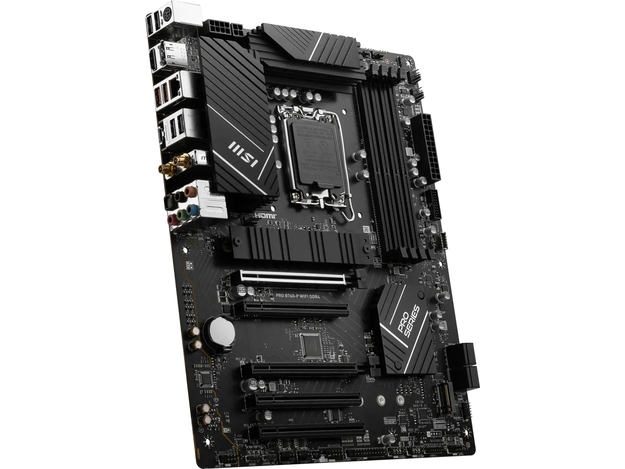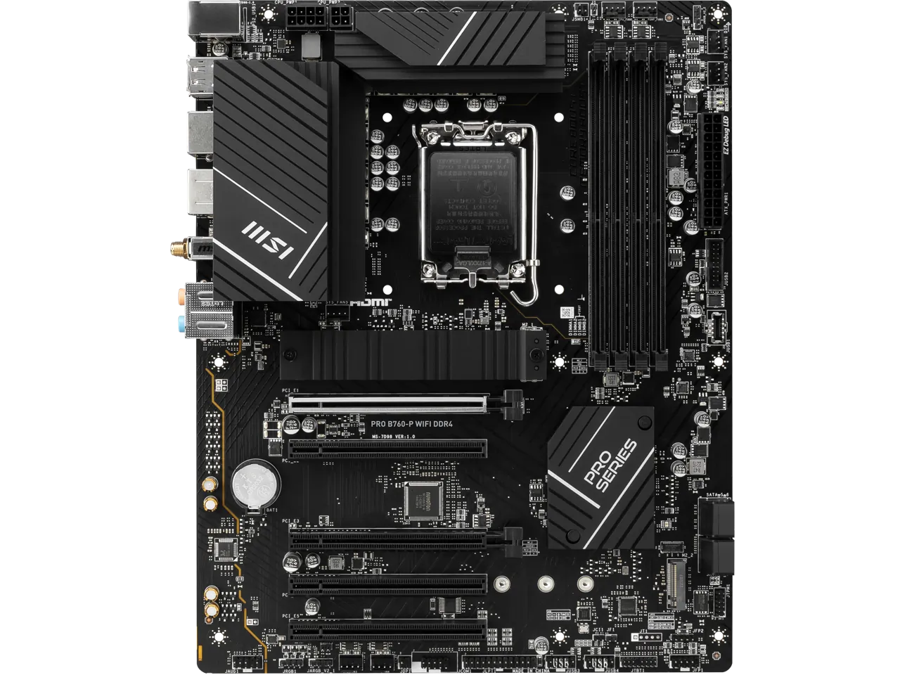 The MSI PRO B760-P WIFI DDR4 motherboard is designed for Intel's 12th and 13th Gen processors, featuring an LGA 1700 socket. It supports SATA 6Gb/s, and offers advanced connectivity options including WiFi 6 and Intel 2.5Gb LAN. With dual M.2 slots, this motherboard is perfect for high-speed storage and seamless multitasking.