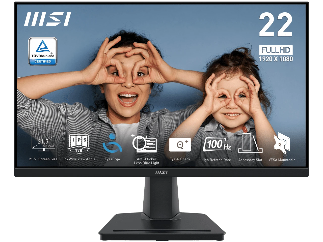The PRO MP225 Productivity Monitor offers an exceptional visual experience with its 22-inch IPS panel. Enjoy sharp details and vibrant colors at a stunning 1920x1080 Full HD resolution. Designed with a sleek matte black finish and a narrow bezel, this monitor not only enhances your workspace but also provides smooth visuals with its 100Hz refresh rate and Adaptive Sync technology.