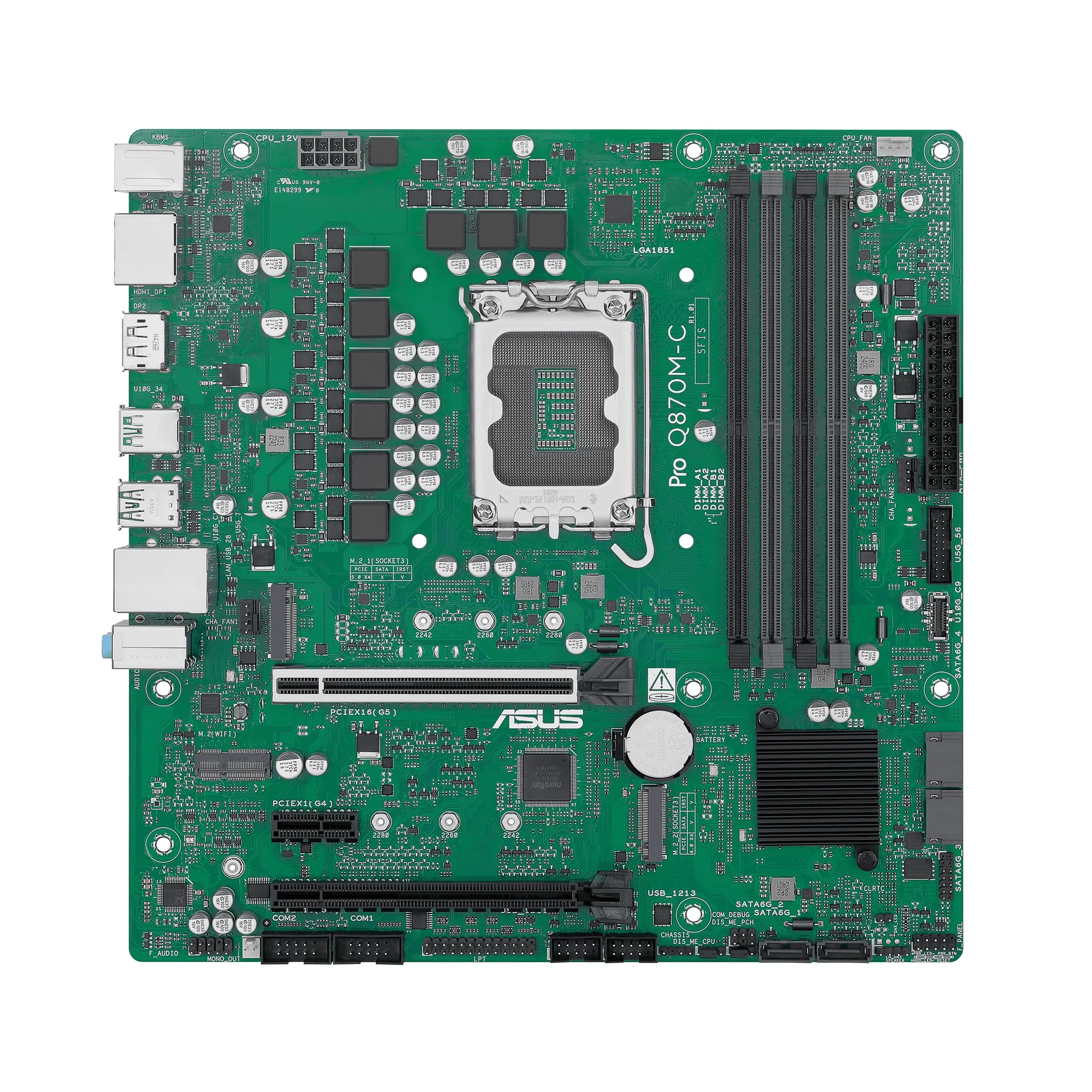 The ASUS PRO Q870M-C is a reliable Micro-ATX motherboard designed for business applications. It delivers excellent performance with support for various Intel processors, ensuring stability and efficiency for professional environments.