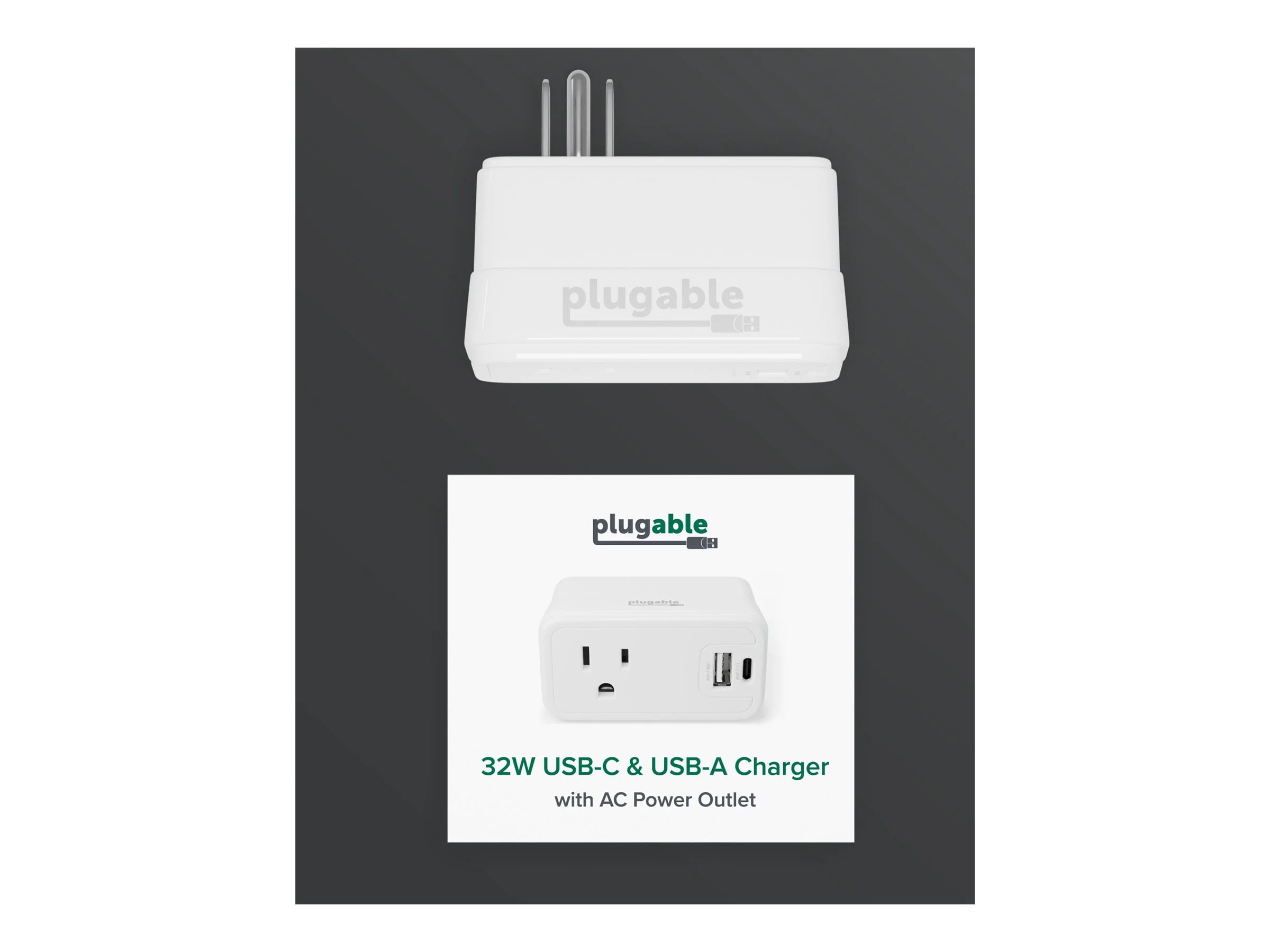 The Plugable 32W USB-C and USB-A Dual Charger offers efficient charging for your devices. Equipped with both USB-C and USB-A ports, it delivers optimal power to your smartphone, tablet, and more.