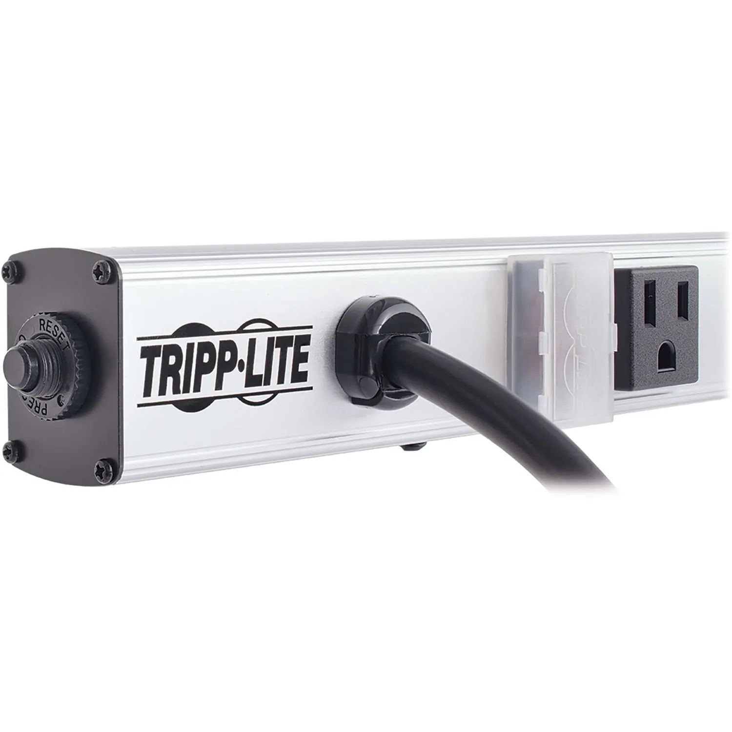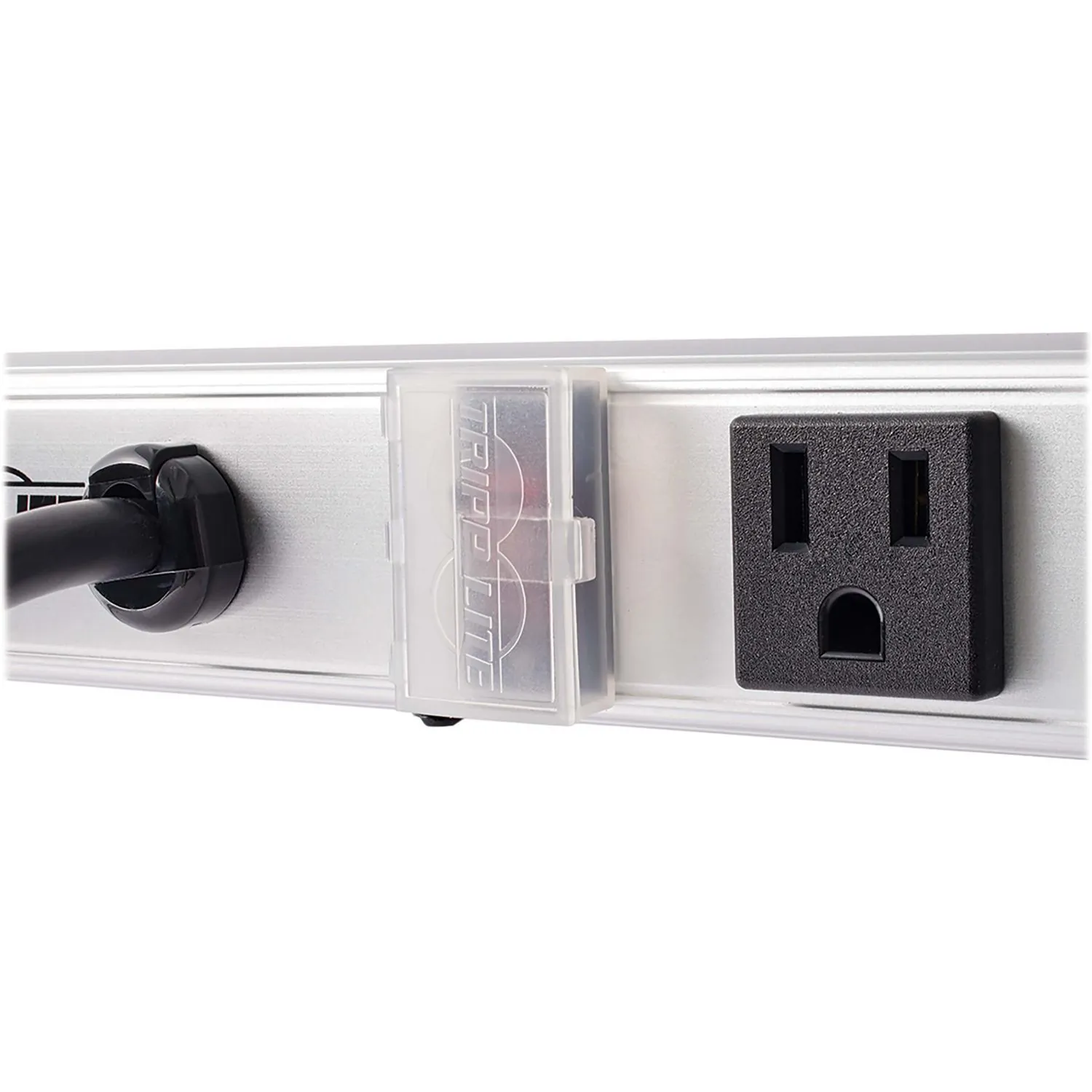 Tripp Lite's PS3612RA power strip offers 15 amp, 120V multi-outlet AC power distribution in a convenient 36 inch mountable housing. Ideal for horizontal or vertical raceway style power distribution in office, workbench, industrial, networking and telecom applications. Includes 12 right-angle NEMA 5-15R receptacles with 2.64 inch center-to-center spacing, 15 foot AC line cord and lighted power switch with locking transparent cover to prevent accidental shutoff. Sturdy all-metal extruded aluminum housing stands up to demanding network, laboratory or factory environments.