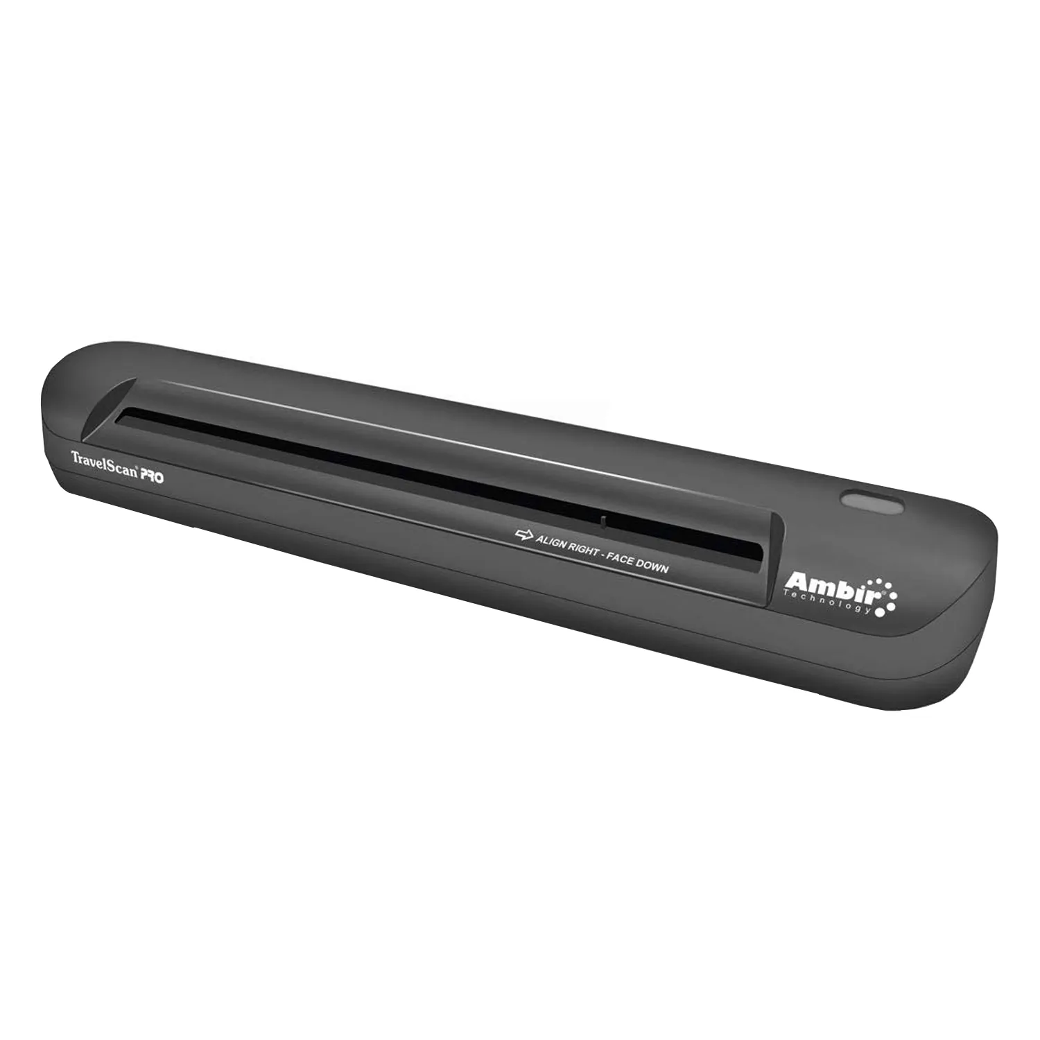 Ultra-Compact Footprint- At about the size of a three-hole punch, the TravelScan Pro takes up far less space than flatbed scanners. That makes it perfect for crowded desks and mobile users.USB-Powered Convenience- Because it?s powered by your computer?s USB port, you?ll never search for an outlet or carry a bulky AC adapter again.Superior Media Handling- Easily handles piles of paper documents and receipts, along with identification, and insurance cards.Broad Compatibility- The highly-compatible TWAIN driver ensures functionality with thousands of software applications and hardware systems.Professional-Grade Quality- Durable and reliable enough for high volume environments like hospitals, banks and busy points of sale.Straight-to-PDF Scanning- With included AmbirScan image acquisition software, users can scan directly to industry-standard PDF format.AutoContinue Function- This AmbirScan feature allows you to continuously feed media, meaning piles of documents or cards can be scanned quickly.