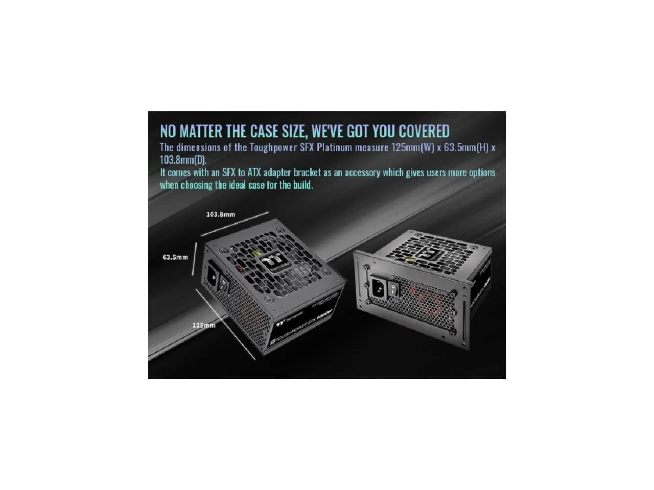 Measuring 125mm(W) x 63.5mm(H) x 103.8mm(D), the Toughpower SFX Platinum is compact yet powerful, making it an ideal choice for high-performance builds.