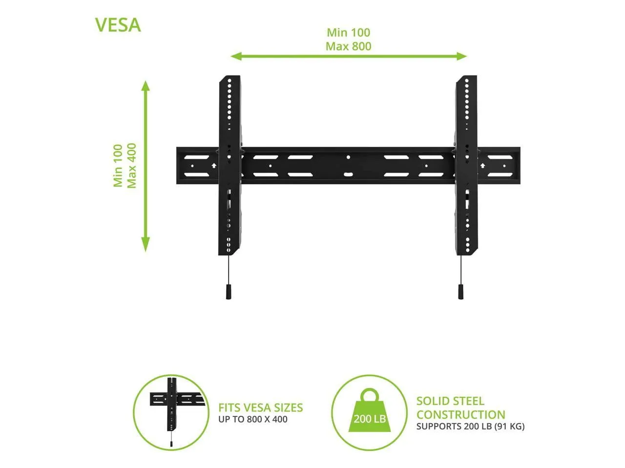 The PT400 is a low-profile, tilting wall mount designed to enhance your TV viewing experience. Its pre-tensioned mounting brackets offer a generous 12 degrees of forward tilt, ensuring optimal line-of-sight and reducing glare. The mount comes equipped with adjustable screws for precision leveling and includes Torx screws and a locking feature to deter theft. Quick release cords make it easy to remove your TV whenever necessary.