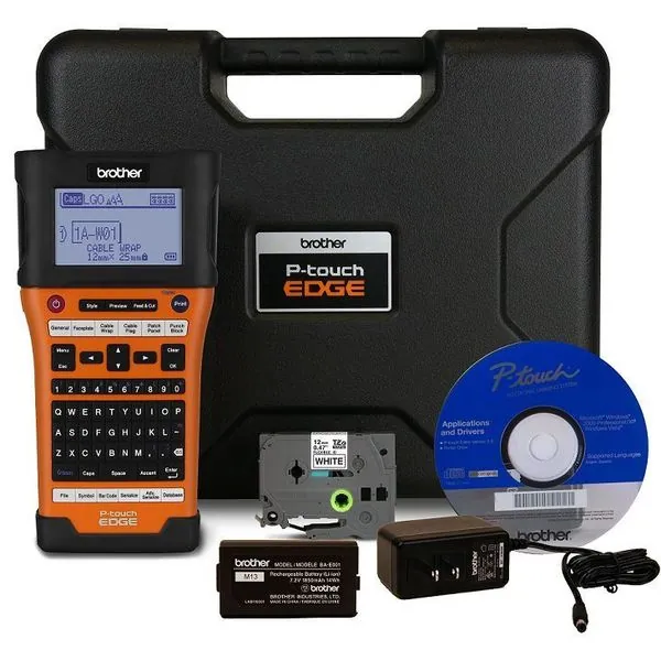 Item Type: Portable Label PrinterBrand: BROTHERManufacturer Part Number: PT E500Includes: 12mm x 8m Black on White Flexible ID Laminated TZe Tape, Li-Ion Rechargeable Battery, Power Adapter, Custom Carrying Case, Adjustable Wrist Strap, User Manual, USB Cable, CDFeatures: Smart Label, Serialization Options and Easy to Use