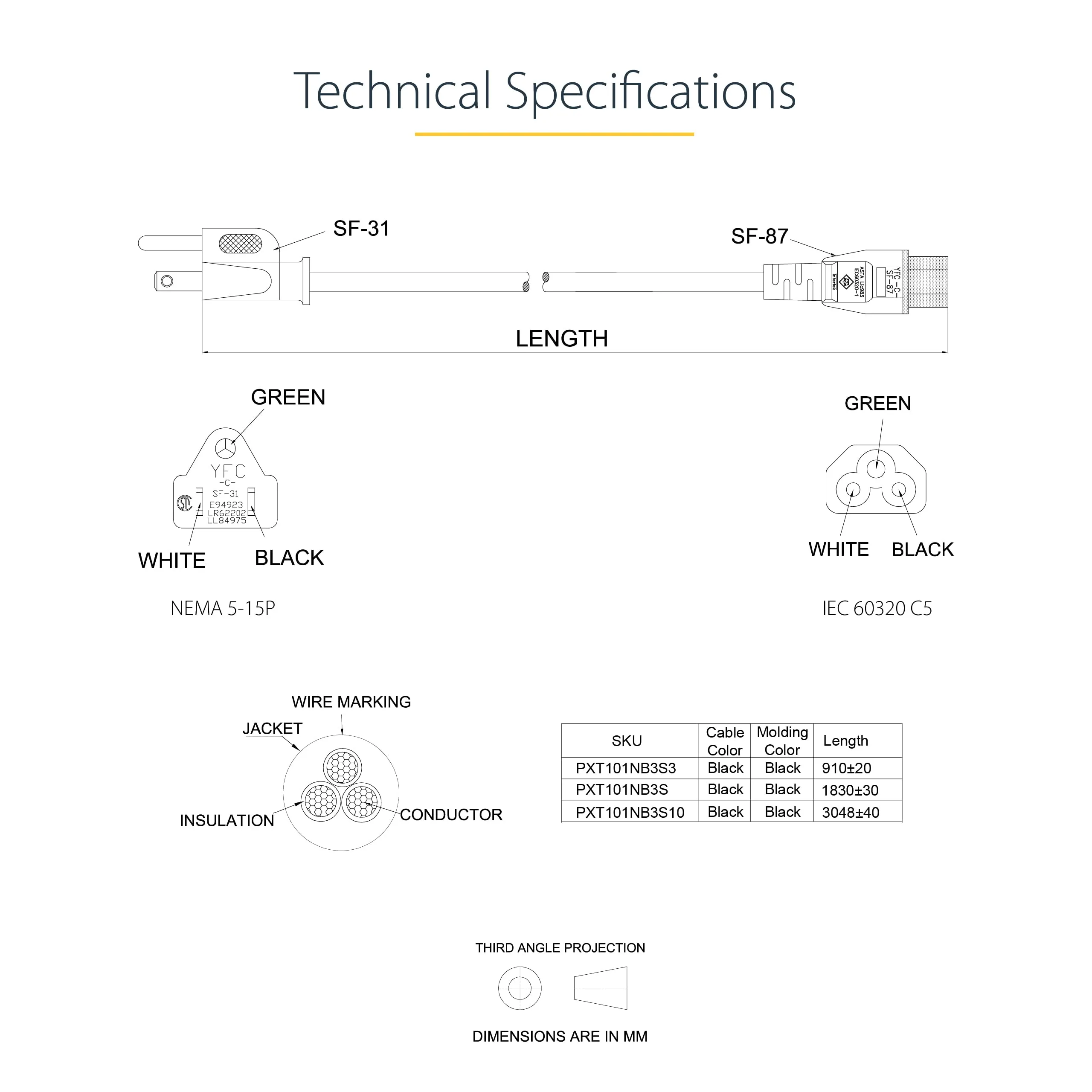 6FT LAPTOP POWER CORD NEMA 5-15P TO IEC C5 AC POWER CORD FOR MOST NOTEBOOKS PO