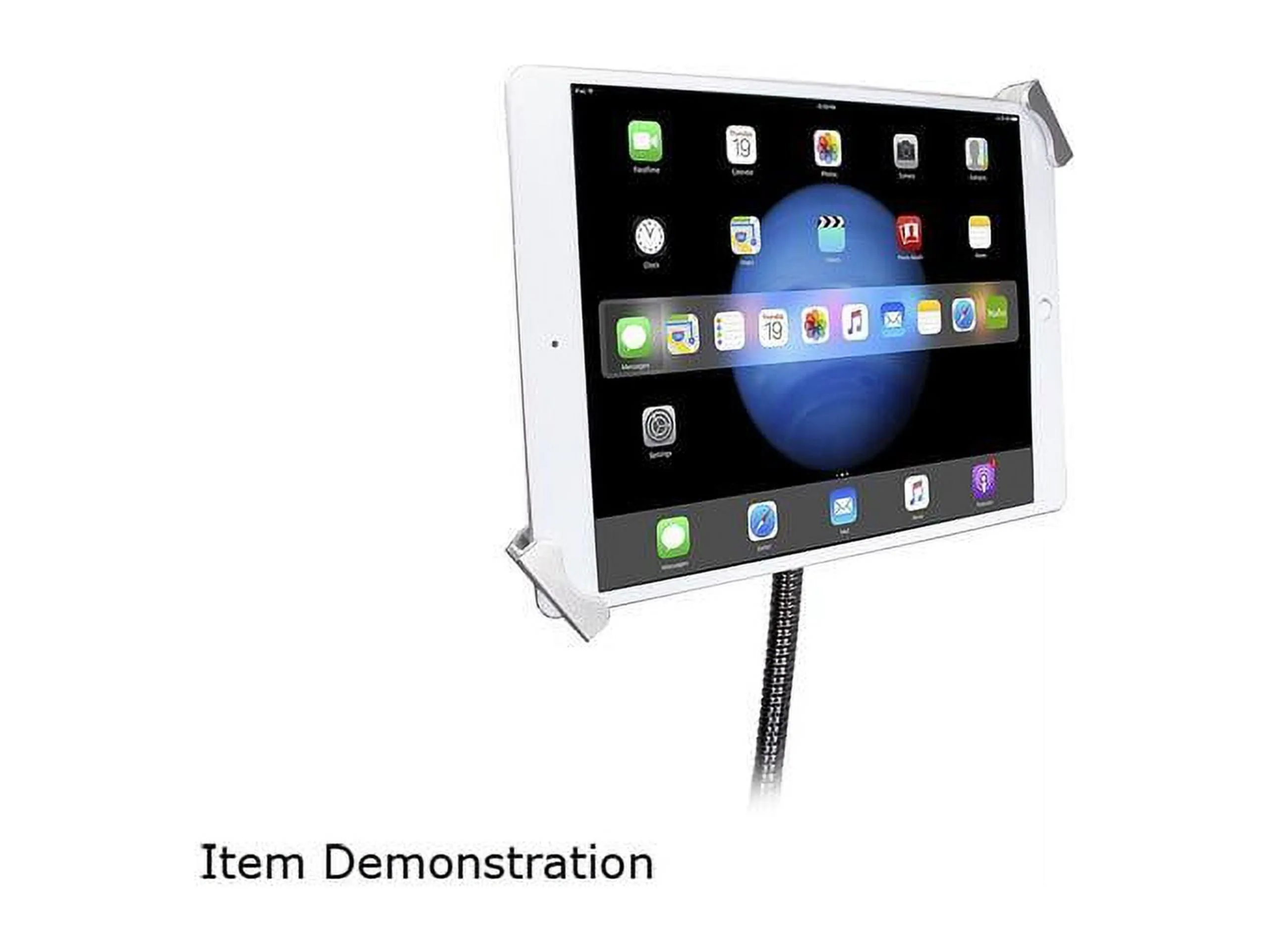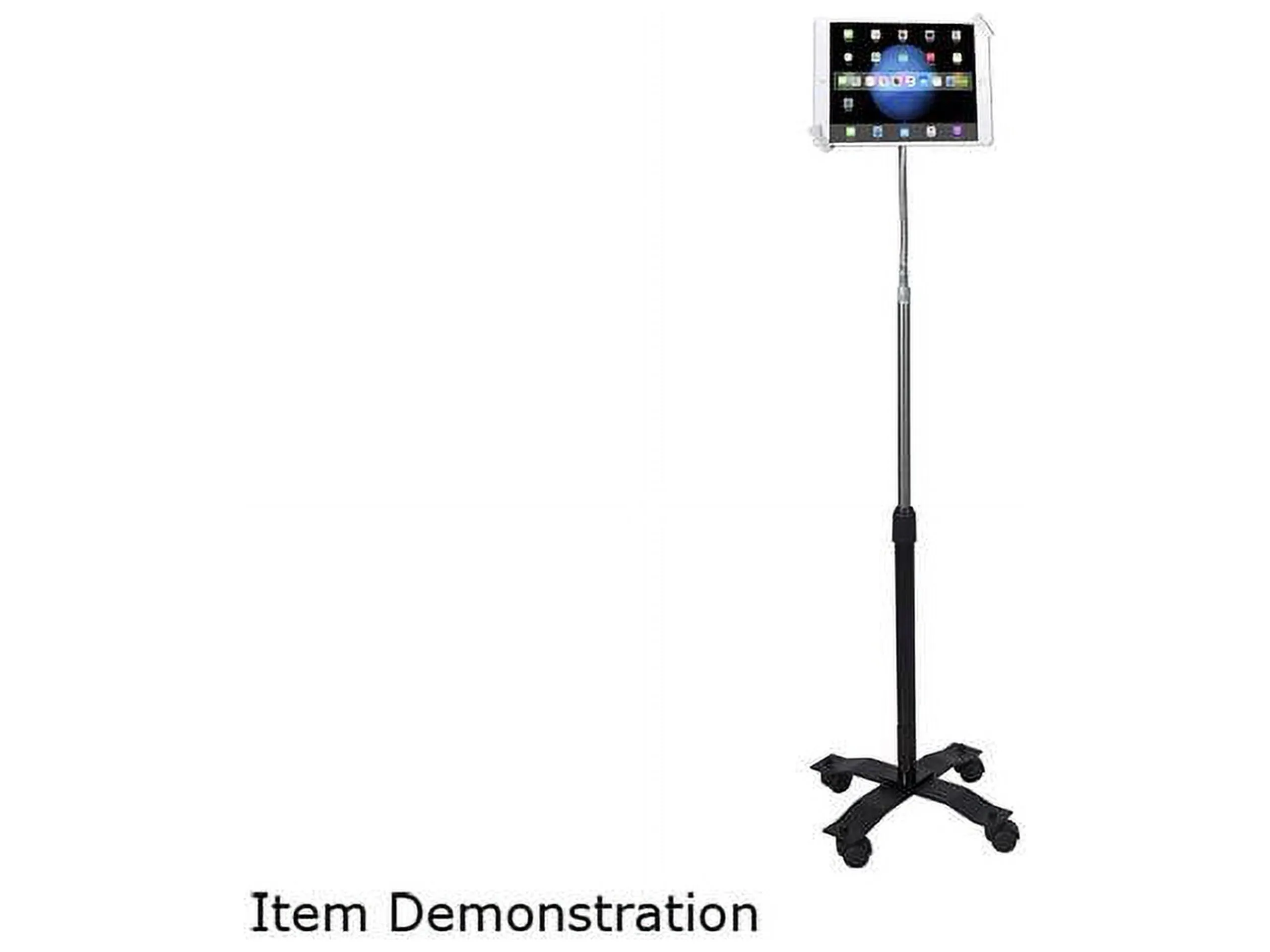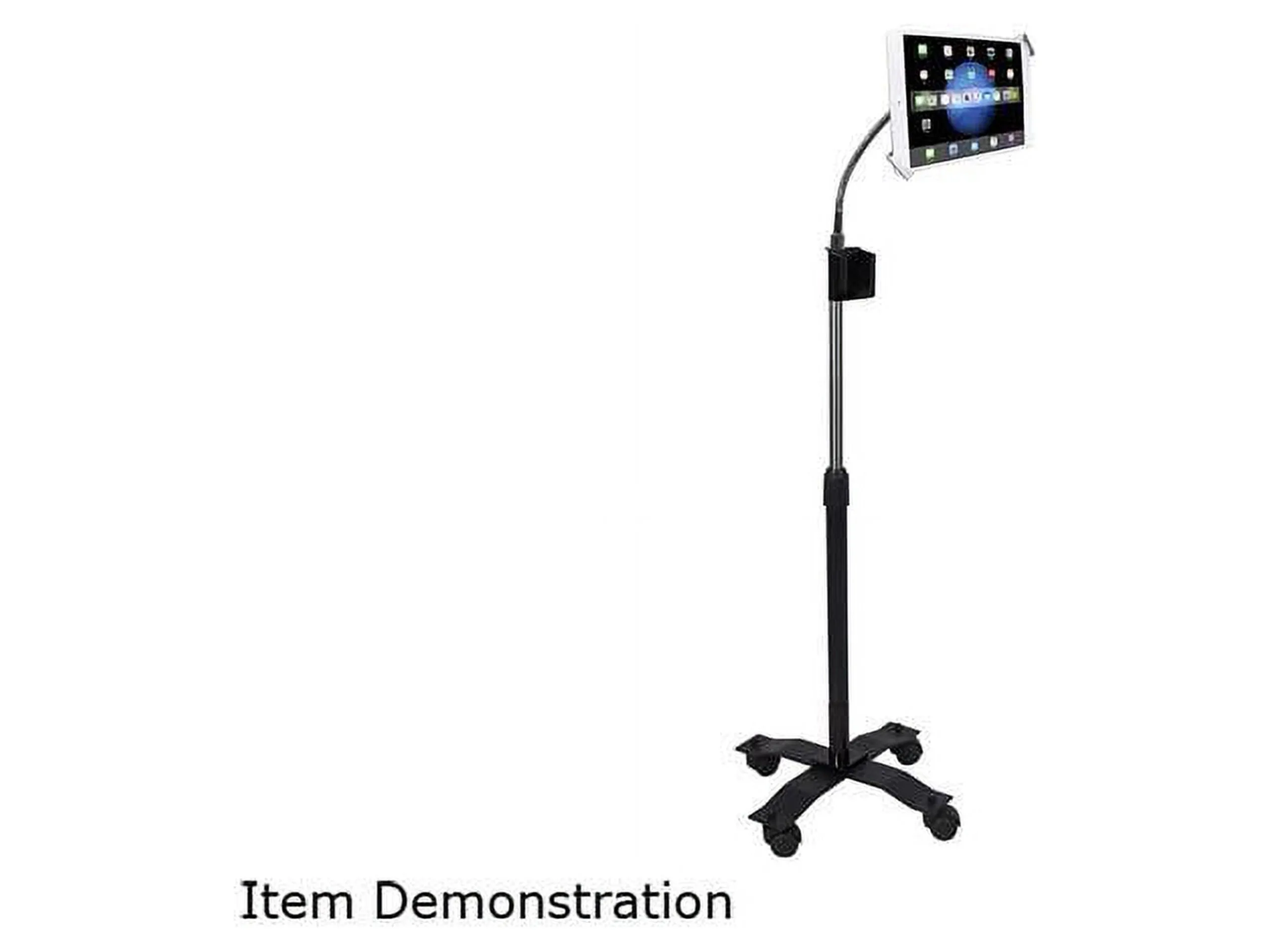 This gooseneck floor stand is designed for tablets ranging from 7 to 13 inches, providing a stable and secure solution for displaying your device. With an adjustable height and angle, it allows for easy viewing while keeping your tablet locked in place.