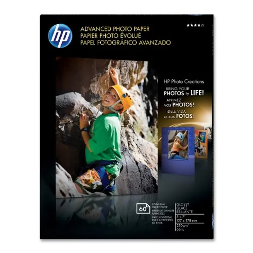 HP Advanced Inkjet Photo Paper - White - 5 x 7 - 66 lb Basis Weight - Glossy - 60 / Pack