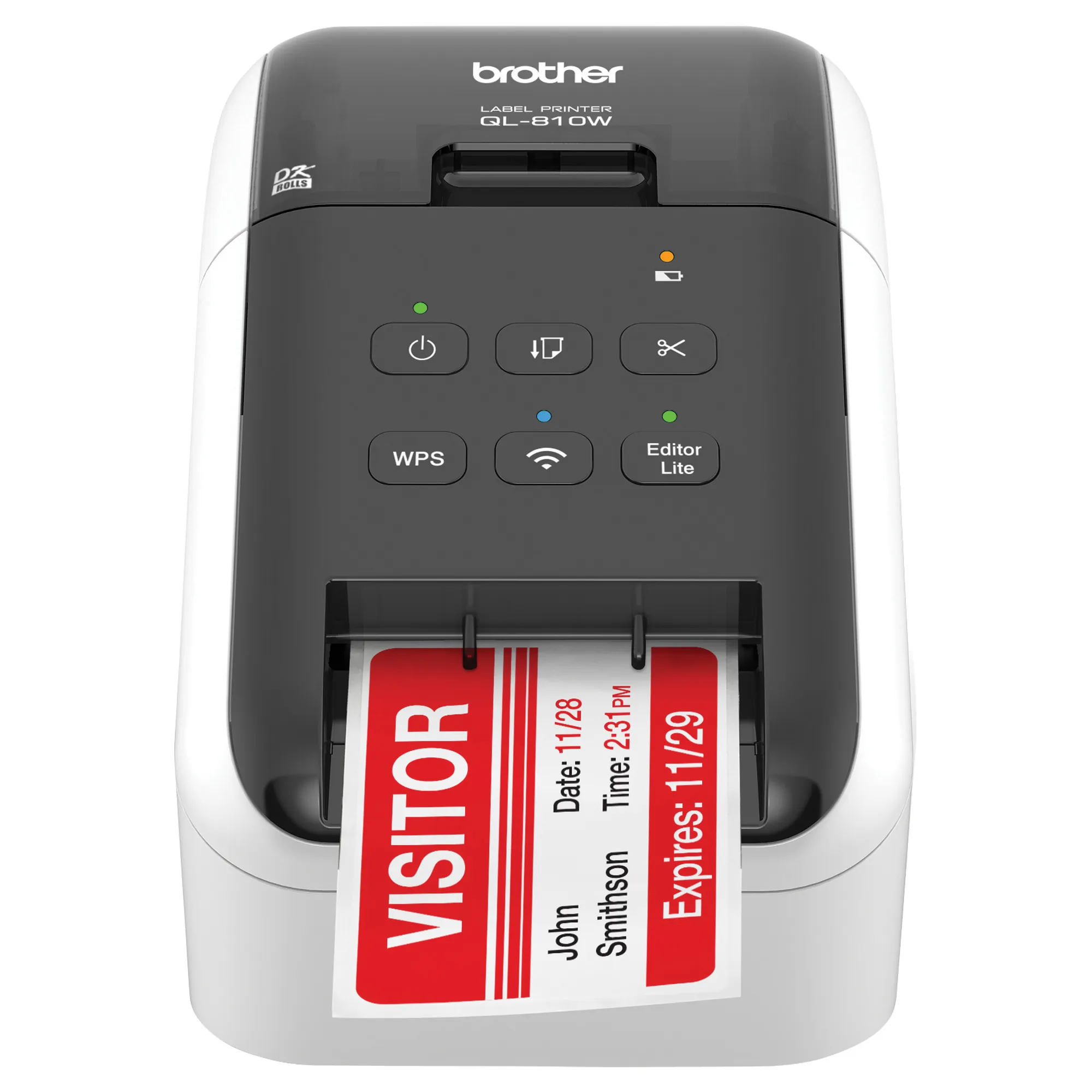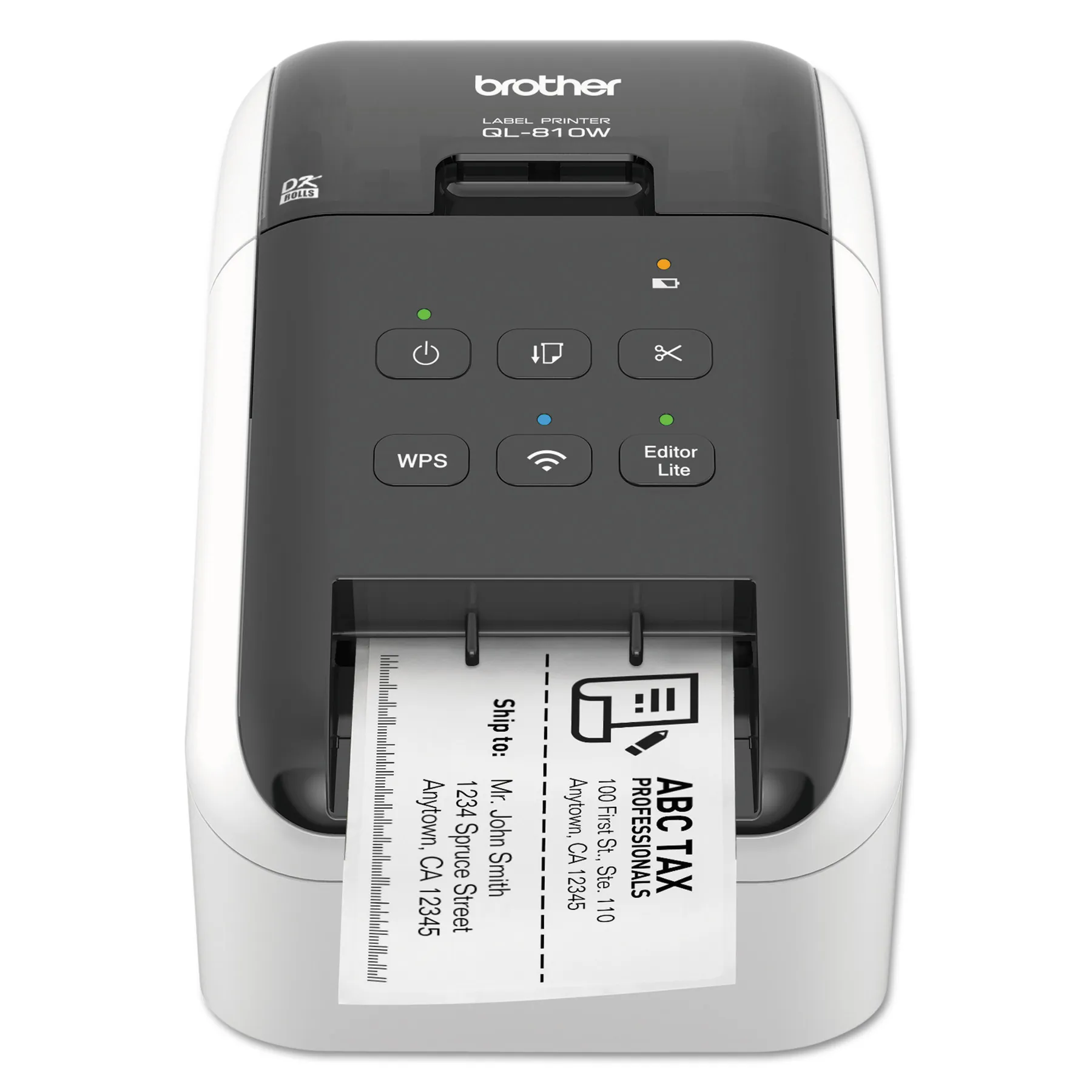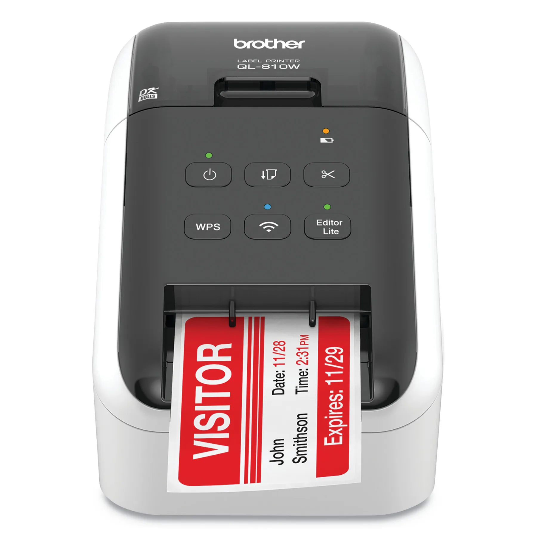 Brother QL-810W Wireless Label Printer - Direct Thermal - Monochrome - Prints amazing Black/Red labels using DK-2251. Print labels wirelessly using AirPrint or Brother iPrint&Label app. Ultra-fast, printing up to 110 standard address labels per minute with black text at 300 dpi. Monochrome Label Print - 1.8 lps Mono - Wireless LAN