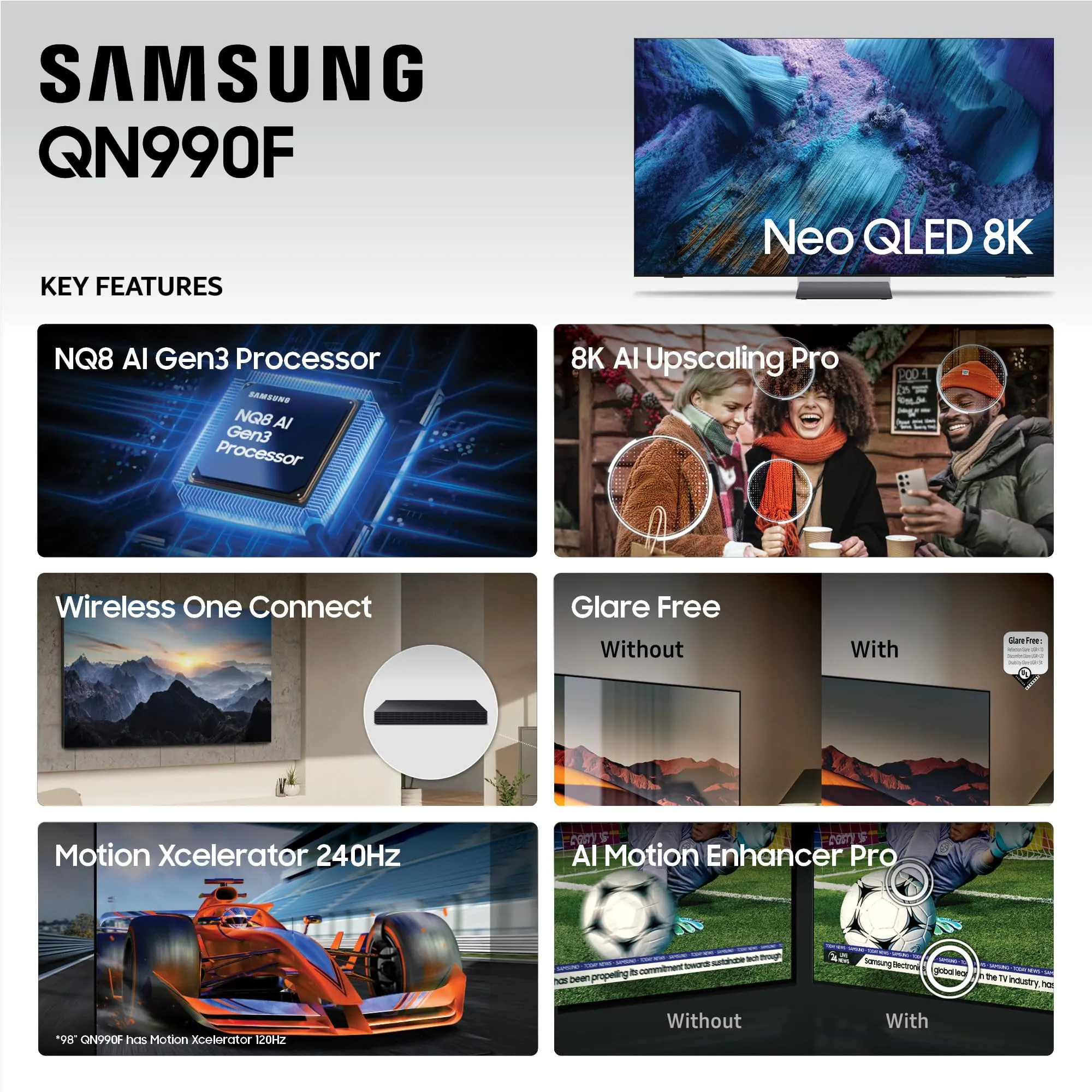Experience stunning picture quality with the 75-Inch Neo QLED 8K Smart TV, designed to deliver breathtaking detail and vibrant colors. With Quantum Matrix Technology, it manages brightness levels for exceptional contrast and a more immersive viewing experience. Its sleek design seamlessly blends into any home decor.