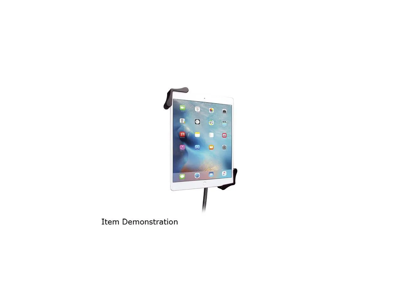 • Compatible with 7 in. to 13 in. tablets, Microsoft Surface(R) Pro 4; iPad Pro(R) 9.7, iPad(R) 10.2 (gen 7), iPad(R) Gen. 6 (2018), iPad(R) Gen. 5 (2017), iPad Pro(R) 10.5/12.9, iPad mini(TM) 4, iPad mini(TM) 1-3, iPad Air(R) 1/2, iPad(R) 2-4 & 12.9 in./11 in. iPad Pro(R) (2018) ;• Flexible gooseneck provides multidirectional adjustment ;• Jointed tablet holder tilts side to side and rotates 360deg for landscape and portrait orientations ;• Easy height adjustment ;• ADA compliant;• Attachable battery-pack cradle ;• Weighted metal base ;• Includes telescoping pole, multifunction storage cradle, swivel casters, and set of tools and hardware;