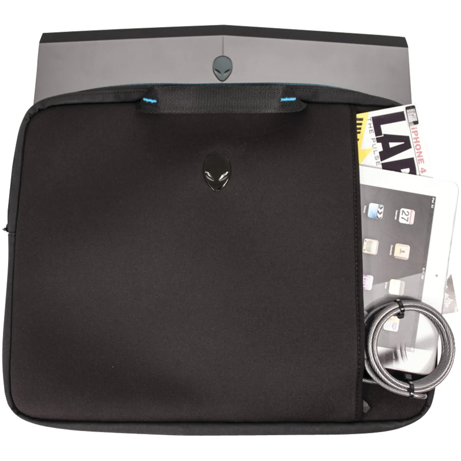 Designed for the new version of Alienware laptops. Designed specifically for 17.3" Laptops. Great on its own, works well with others: Whether using the Vindicator Neoprene Sleeve by itself or placing it into another bag for added protection, the flexible neoprene padding provides extra protection for your laptop. Convenient in every way: With a non-slip base to keep the sleeve in place, nylon handles to grab and go with ease and an oversized exterior pocket for storing your power adapter, USB or flash drives and other miscellaneous gear, the Vindicator Neoprene Sleeve doesn't just protect, it pleases All in the details: With the iconic matte black alien head logo on the front panel, Alienware-engraved reverse zippers and a soft touch Lycra body, the Vindicator Neoprene Sleeve is candy for the eye as well as skin for your system. Lifetime Warranty.