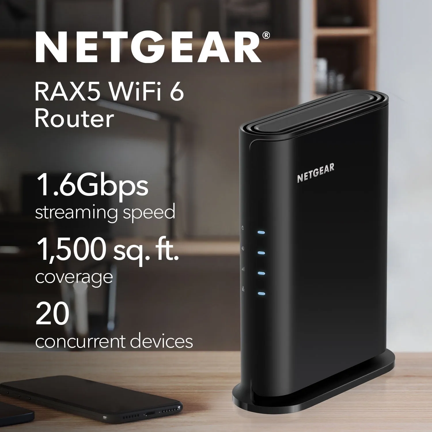 The NETGEAR AX1600 WiFi 6 Router enhances your home network, delivering faster speeds and improved capacity for all your devices. Ideal for small to medium homes up to 1,500 sq. ft., it can handle up to 20 connected devices with ease. Enjoy speeds up to 1.6Gbps, powered by a robust dual-core 880MHz processor that ensures smooth performance for streaming, gaming, and more. Additionally, NETGEAR Armor offers advanced security features to protect your online activities.