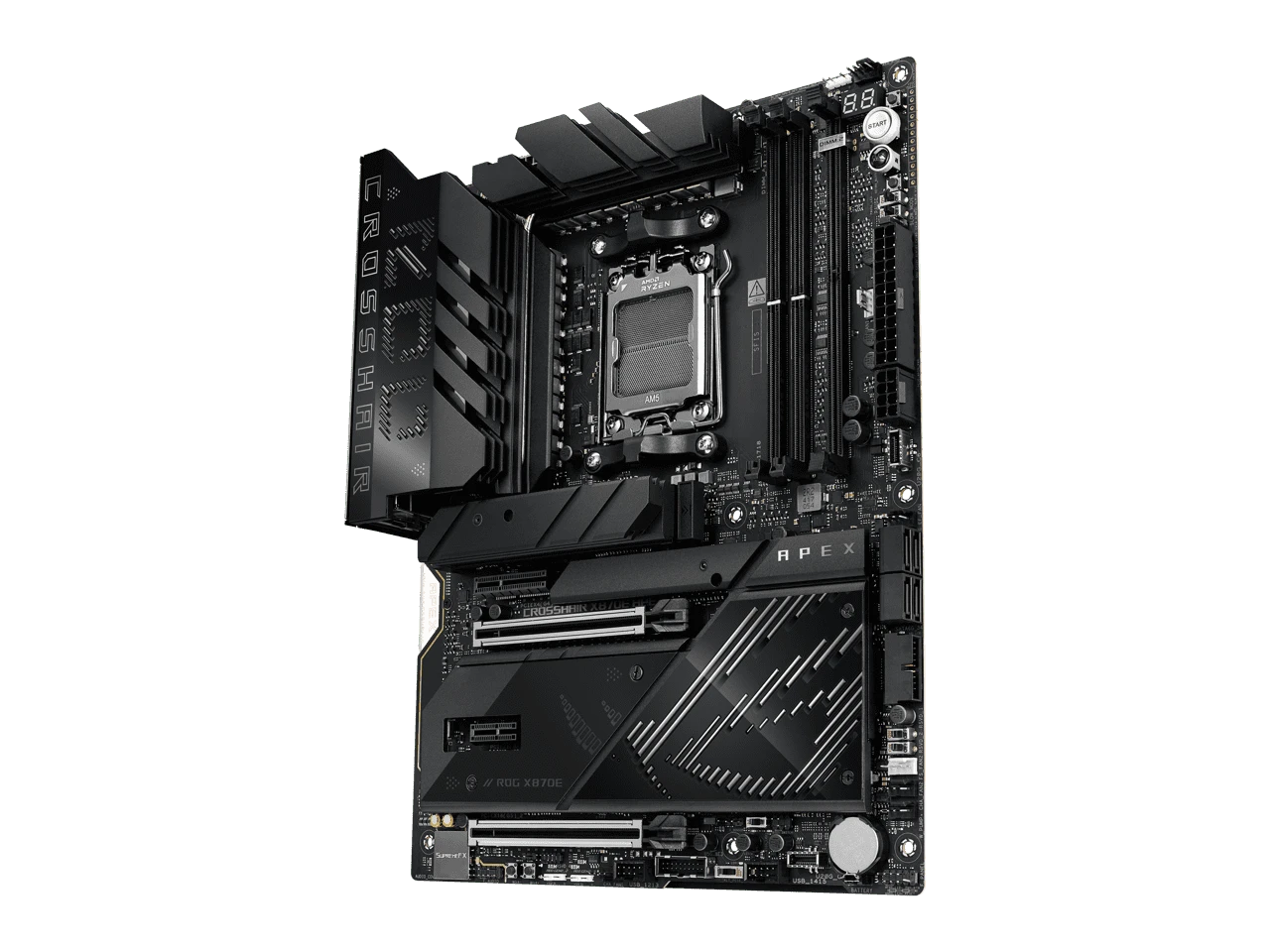 The ASUS ROG Crosshair X870E Apex is a high-performance ATX motherboard designed for AMD AM5 processors. It supports up to 128GB of DDR5 memory and offers cutting-edge features for gamers and enthusiasts alike.