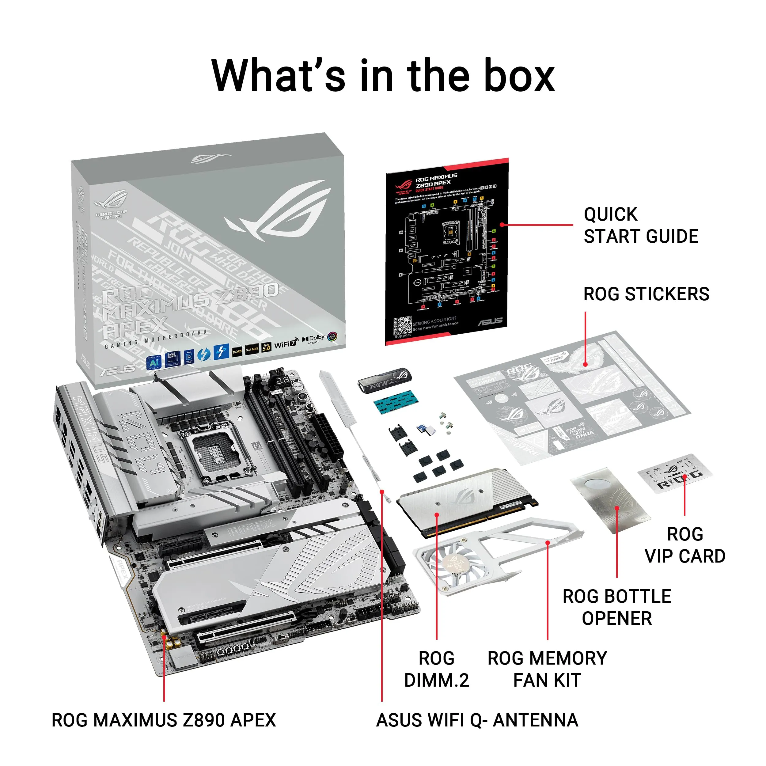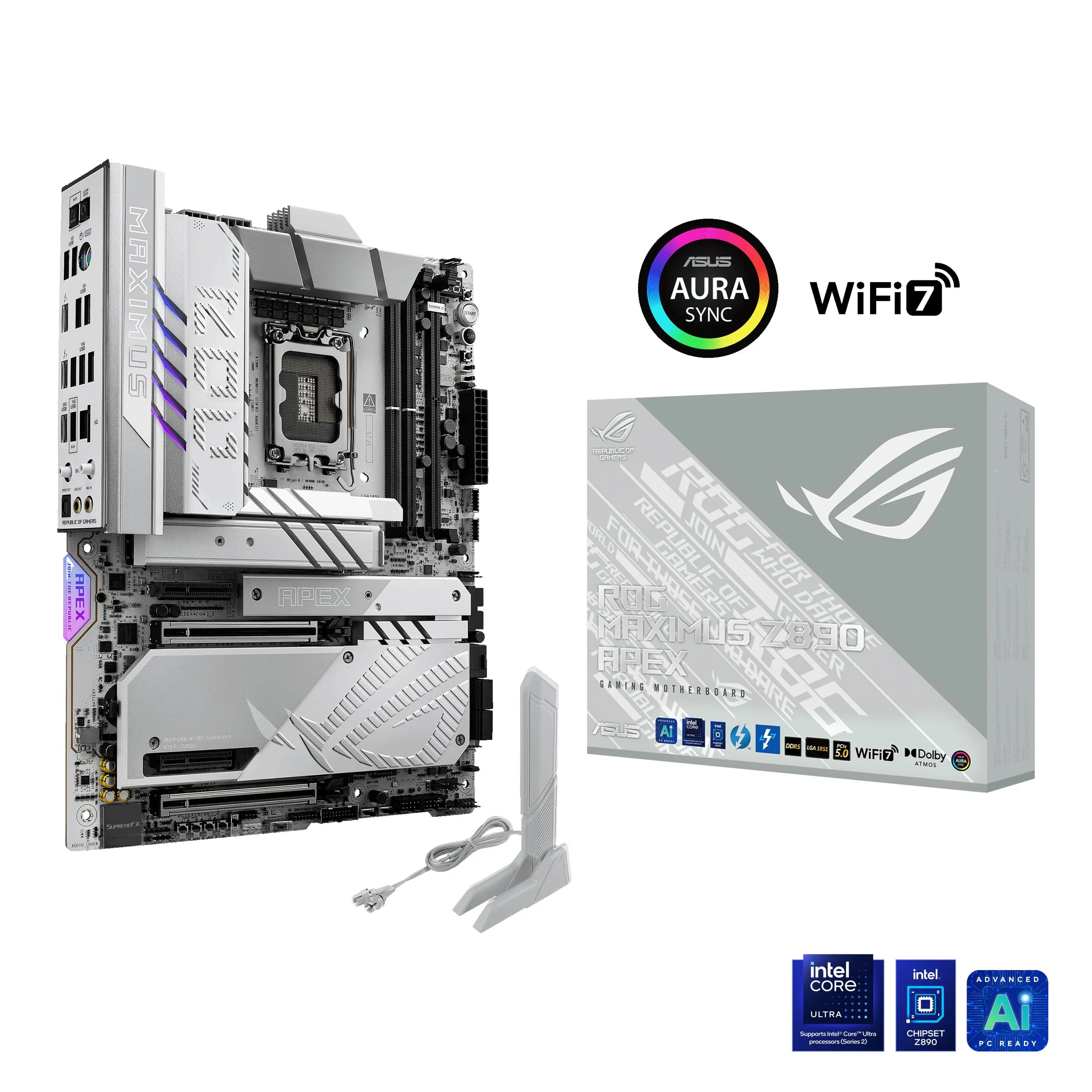 The ASUS ROG MAXIMUS Z890 APEX motherboard is designed for extreme performance, equipped with the latest Intel Z890 chipset and supporting the new DDR5 memory standard. It features a robust power delivery system and advanced cooling solutions to ensure stable operation during intensive tasks.