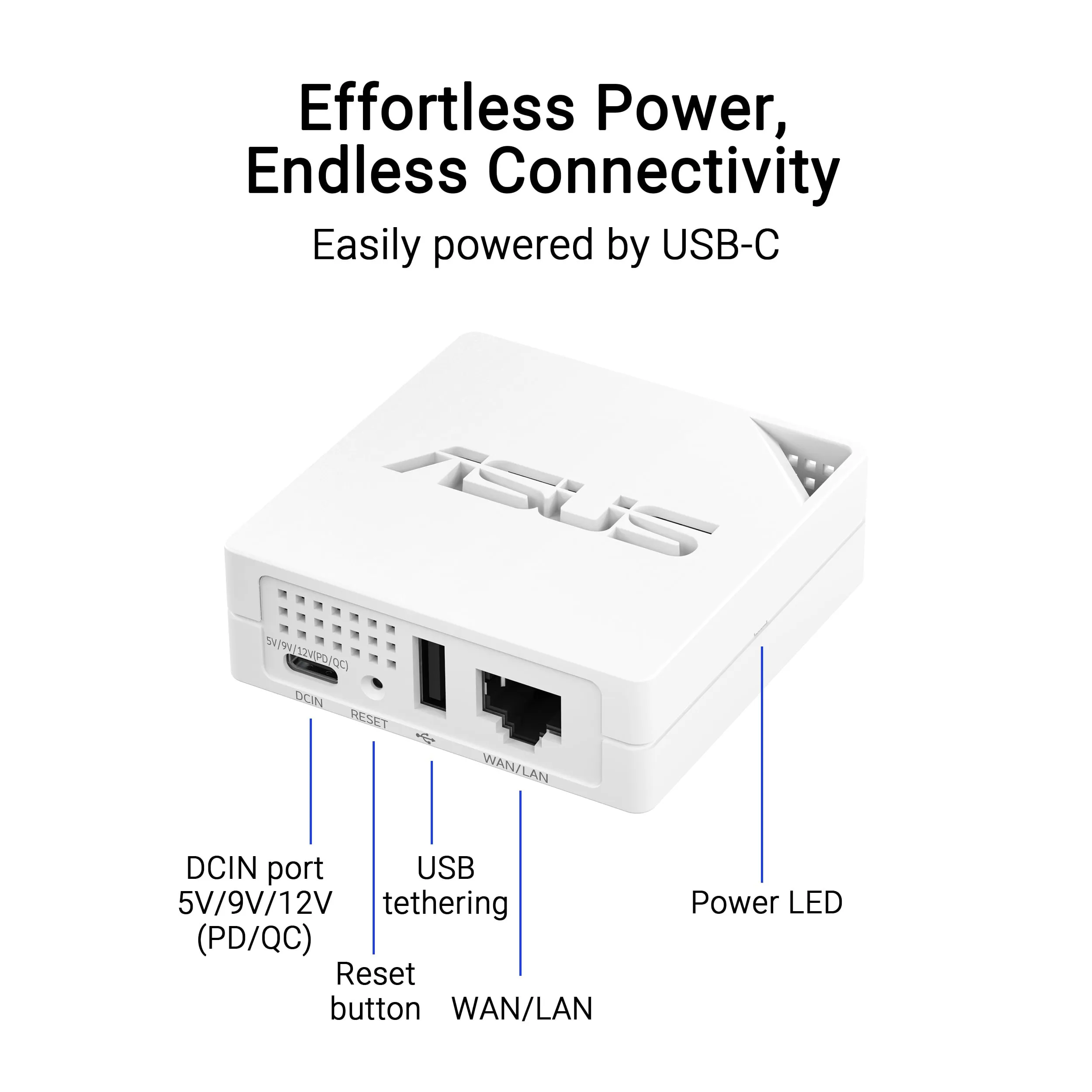 Experience seamless connectivity on the go with the ASUS RTAX50 Go Dualband WiFi 6 Portable Travel Router. With speeds of up to 1500 Mbps, this compact router supports 4G/5G tethering, allowing you to connect to mobile networks or public WiFi with ease.