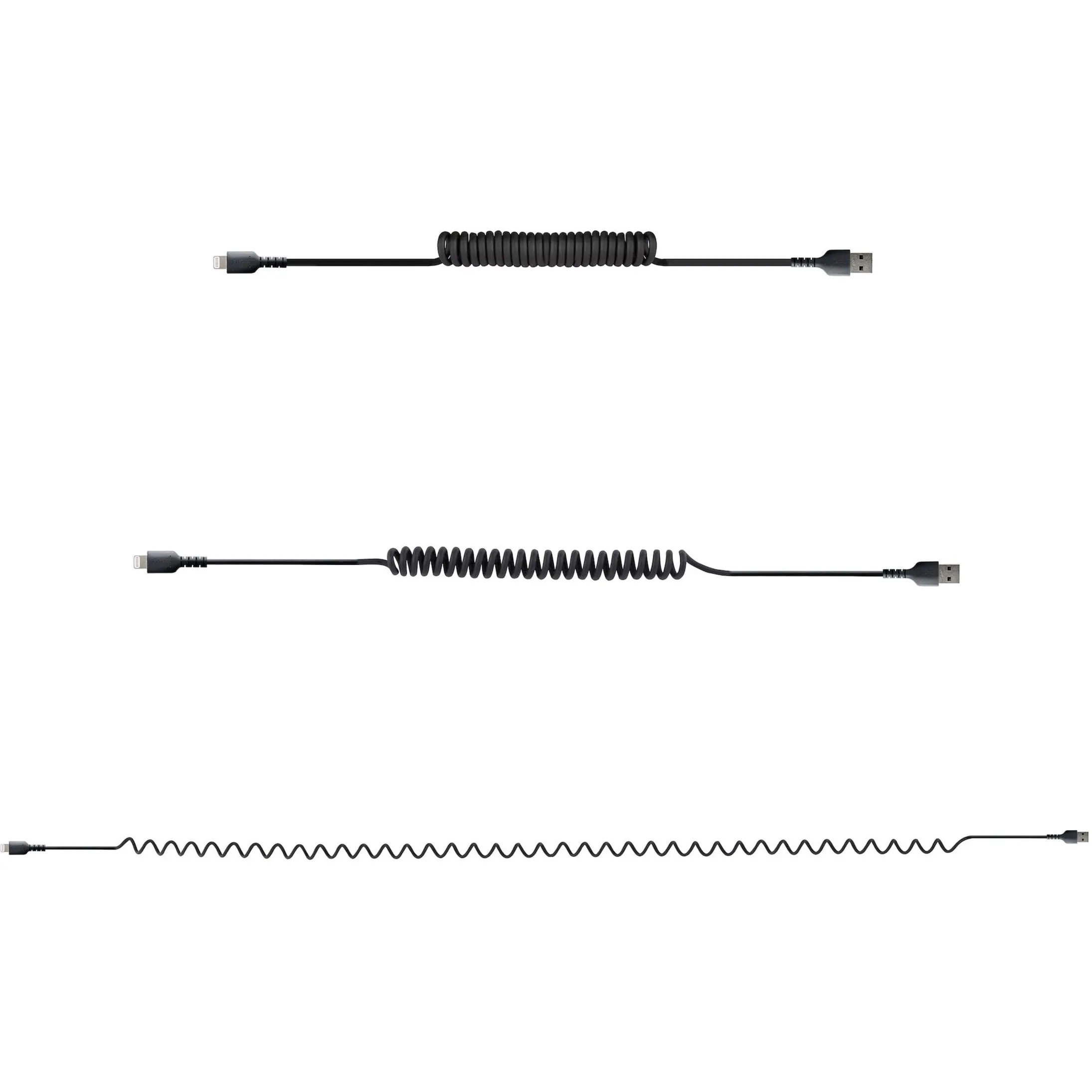 Experience the convenience and durability of the StarTech 3ft Coiled Lightning Charger Cable, specifically designed for Apple devices. This heavy-duty cable offers a tangle-free solution for charging your iPhone with ease. Its coiled design allows for flexible usage while maintaining a compact form for easy storage.