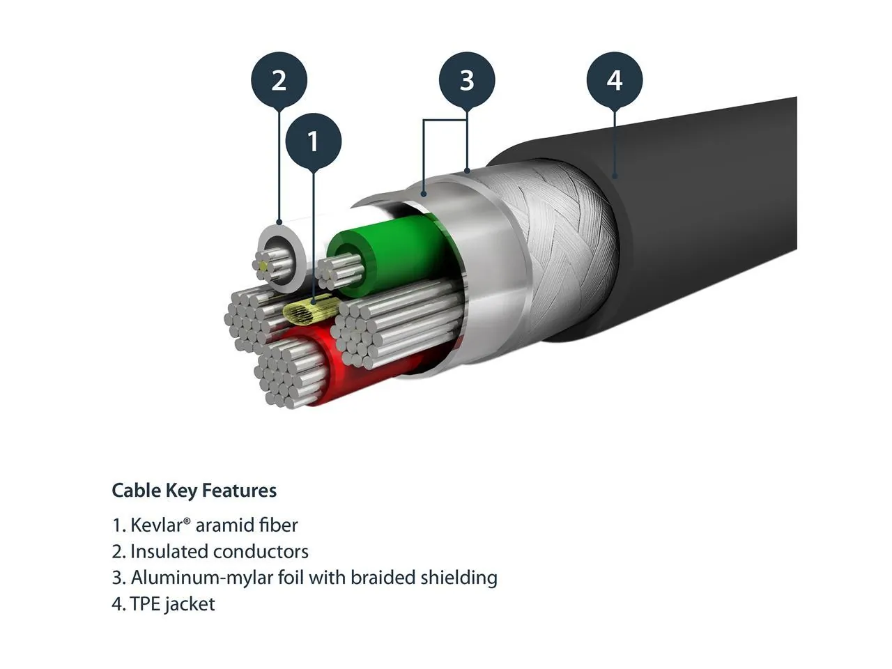 • Aramid fiber adds strength and durability to the cable