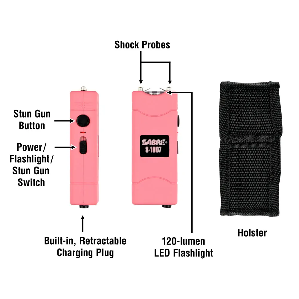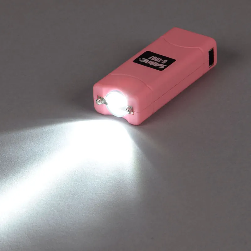 The Sabre Short Stun Gun in a vibrant pink color is designed for personal safety and peace of mind. Compact and powerful, this stun gun features an LED flashlight for added visibility in the dark, making it an essential tool for self-defense.