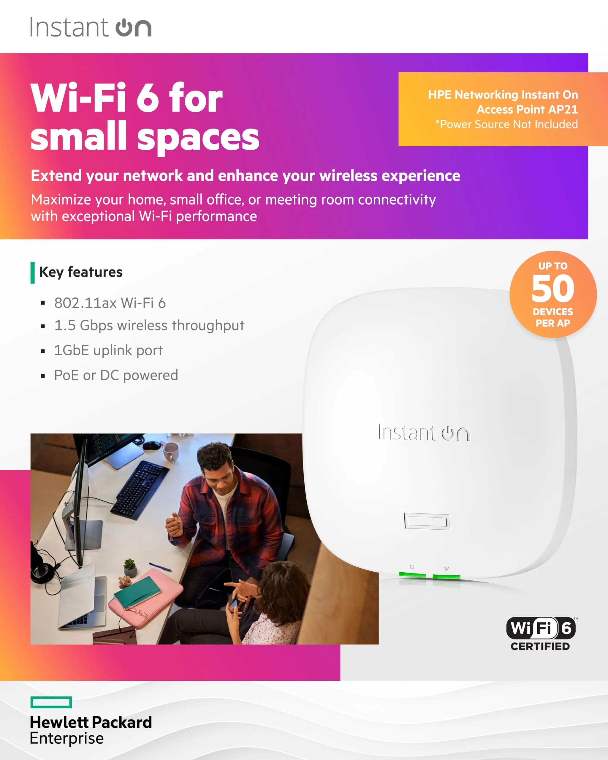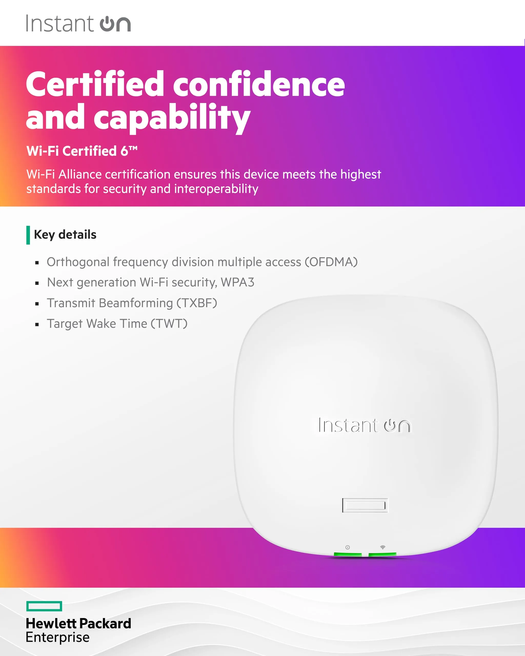The HPE ION AP21 Wireless Access Point delivers cutting-edge Wi-Fi 6 technology to enhance your network performance. With advanced features and robust connectivity options, the AP21 is perfect for high-density environments that require fast, reliable wireless access.