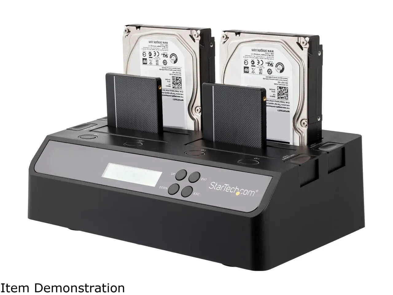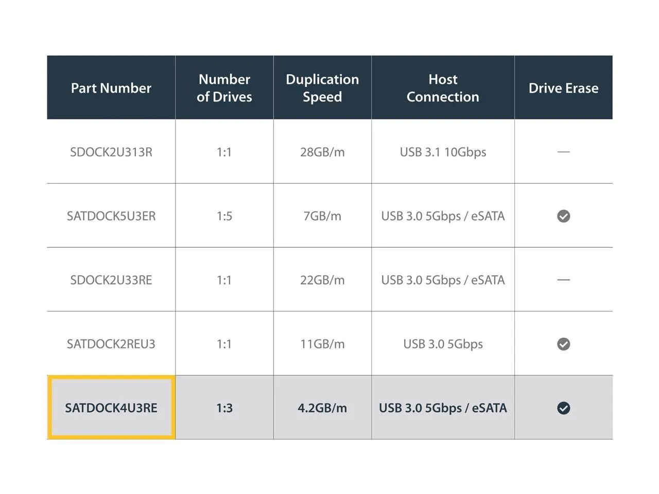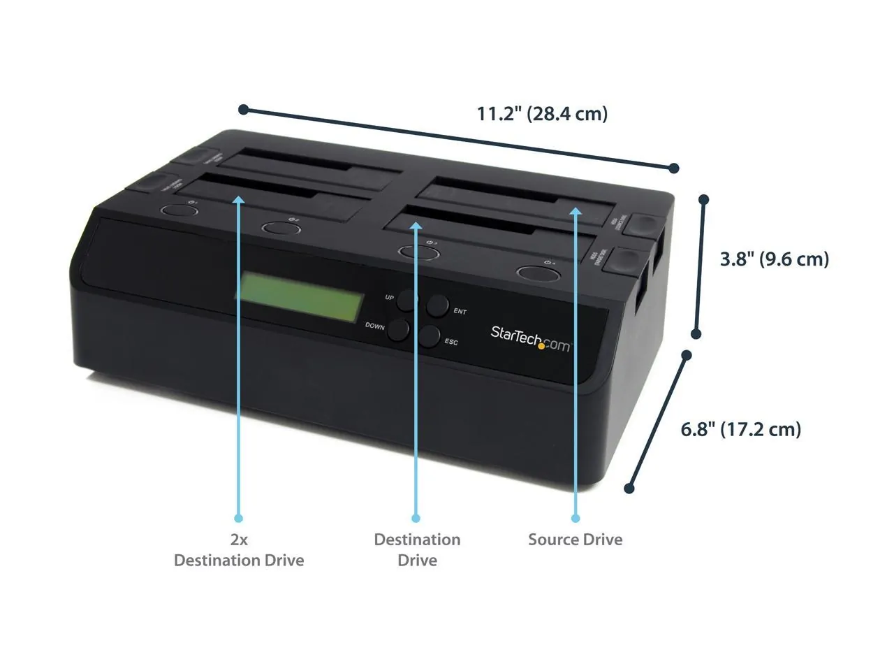 The StarTech SATDOCK4U3RE is a versatile HDD duplicator dock that allows you to clone hard drives with ease. This 1:3 HDD duplicator dock supports up to four bays, providing an efficient solution for data transfer and duplication.