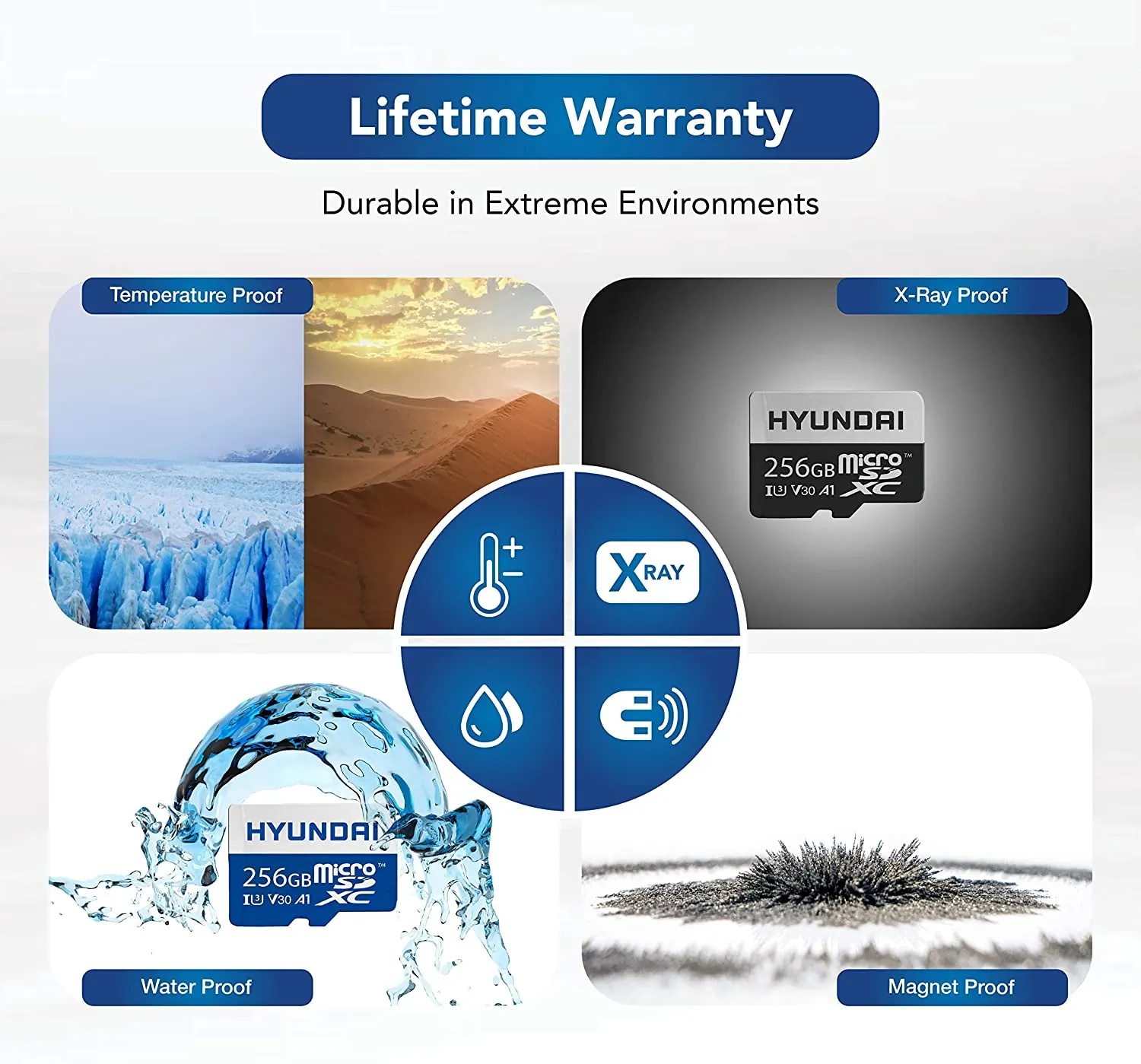 - Lifetime Warranty: Built for and tested in harsh conditions, Hyundai memory cards are reliable and durable, magnet proof, shock proof, temperature proof and waterproof. Backed by a lifetime warranty, every Hyundai microSD is built with absolute quality and precision.