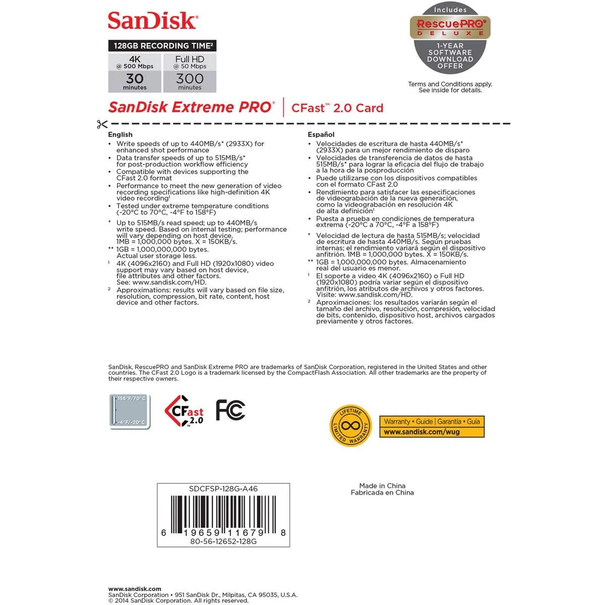 The SanDisk Extreme PRO CFast 2.0 memory card is engineered for professional videographers and photographers who require top-tier performance. With a Video Performance Guarantee of 130MB/s (VPG 130), it supports cinema-quality 4K video recording (4096x2160p). Experience swift write speeds up to 450MB/s and rapid data transfer speeds of 525MB/s, ensuring that your workflow remains efficient and effective. Designed in collaboration with leading camera manufacturers, the SanDisk Extreme PRO CFast 2.0 guarantees an exceptional shooting experience from the very first use.