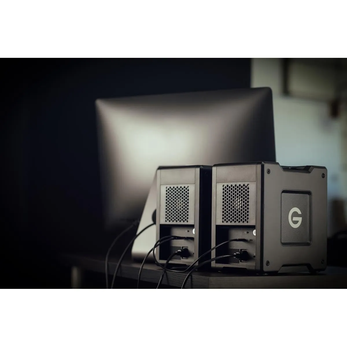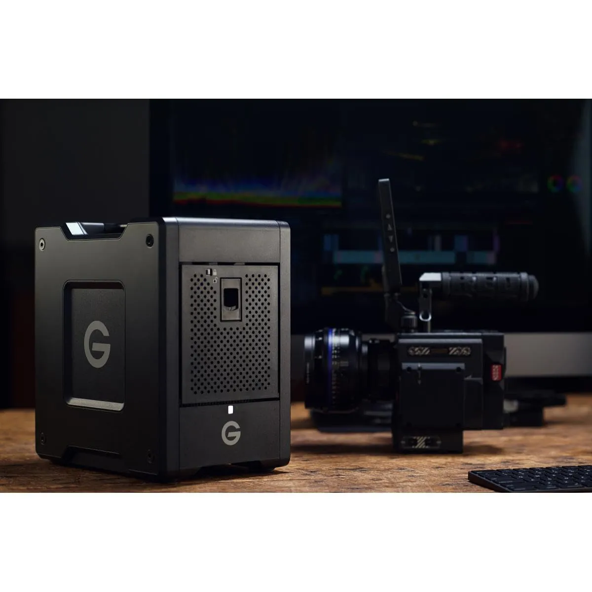 The G-RAID Shuttle 4 is a portable 4-bay RAID solution designed for content professionals, providing a staggering 80TB of capacity. Featuring Thunderbolt 3 (40Gbps) and USB-C (10Gbps) interfaces, this device is built for high-performance tasks such as backup, rapid data access, and real-time video editing. It supports multi-stream 4K, 8K, and VR workflows, offering exceptional transfer speeds of up to 640MB/s read and 800MB/s write in its default RAID 5 configuration. With its robust Ultrastar enterprise-class hard drives and a trusted 5-year warranty, the G-RAID Shuttle 4 meets the demands of professional video workflows both on location and in the studio.