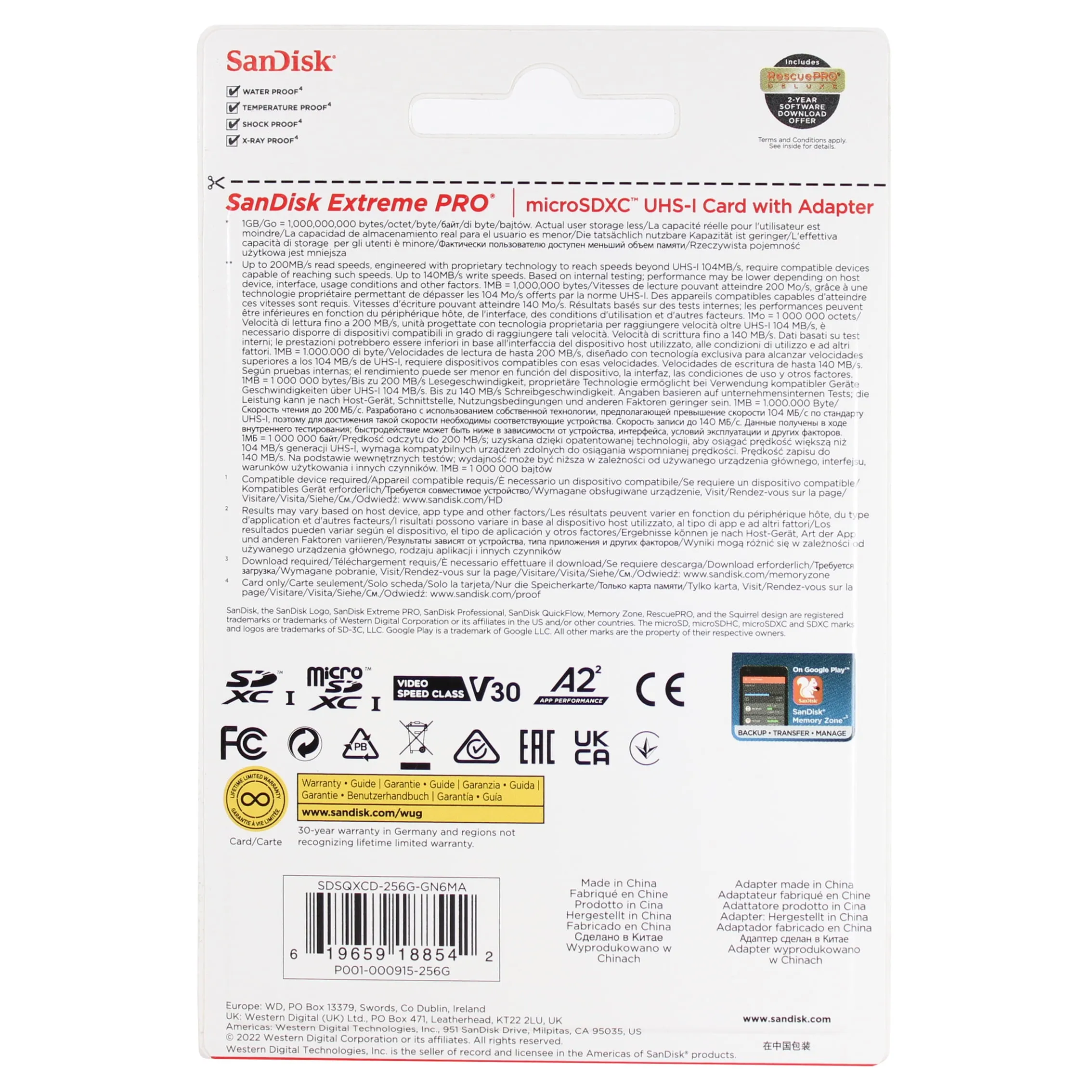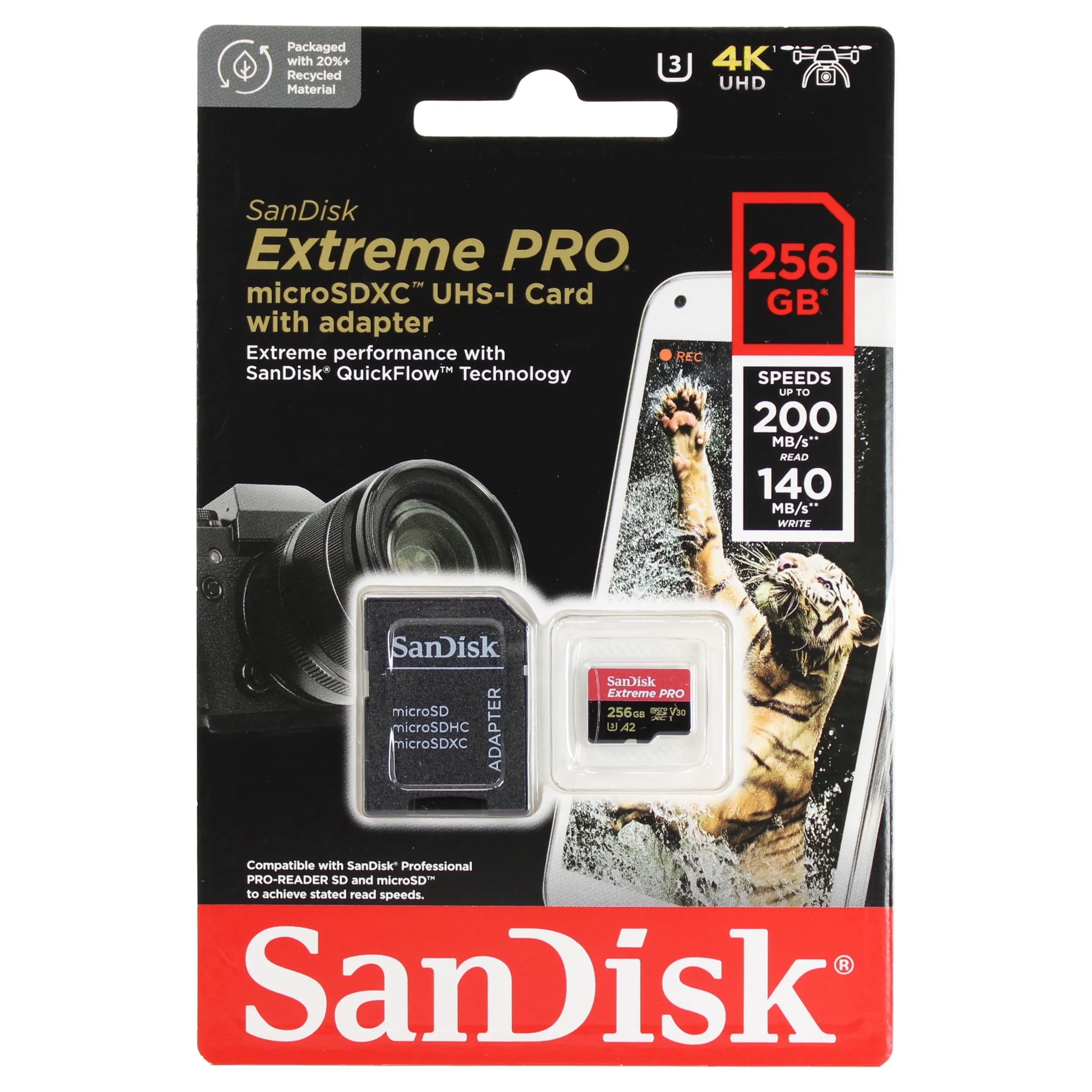 The SanDisk Extreme PRO microSDXC Memory Card offers high-speed performance perfect for capturing 4K UHD video and high-resolution images. With a storage capacity of 256GB, this memory card is designed for professional photographers and videographers seeking reliable and fast storage. The UHS Speed Class 3 (U3) rating ensures that this card can sustain high write speeds, making it an excellent choice for burst-mode photography and continuous 4K video recording.