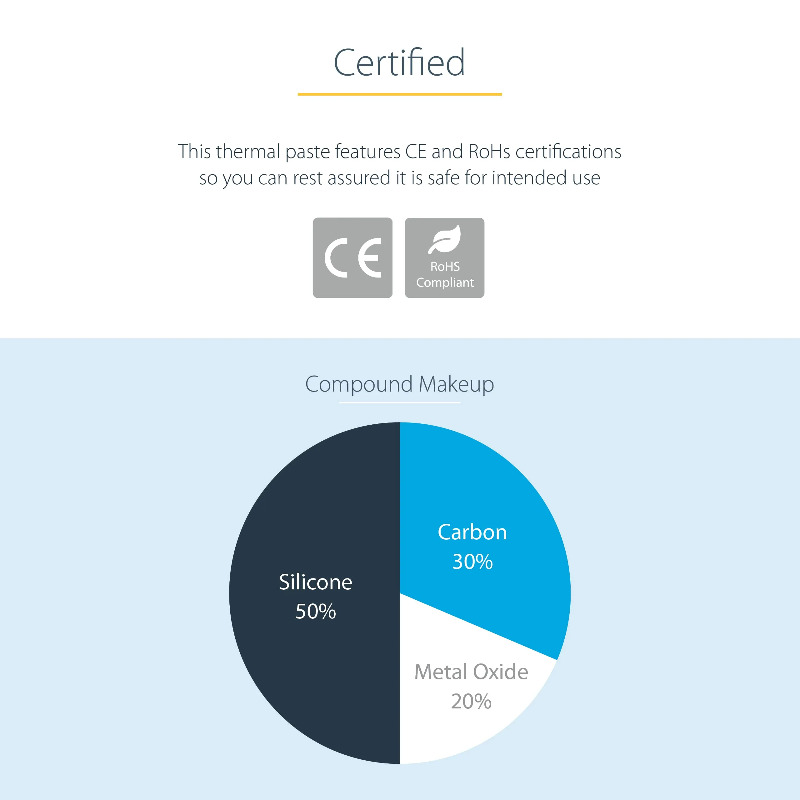 The re-sealable syringes prevent drying, making it convenient for multi-workstation use. Each tube provides 4-6 applications, totaling 20-30 applications across the pack. With a thermal conductivity rating of 3.07 W/m-K at 25°C or higher, this thermal paste is CE and RoHS certified, meeting TAA compliance standards.
