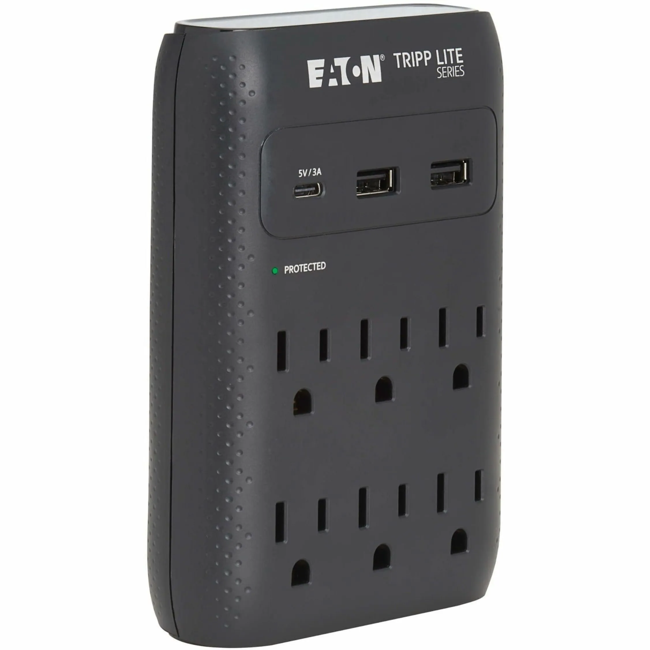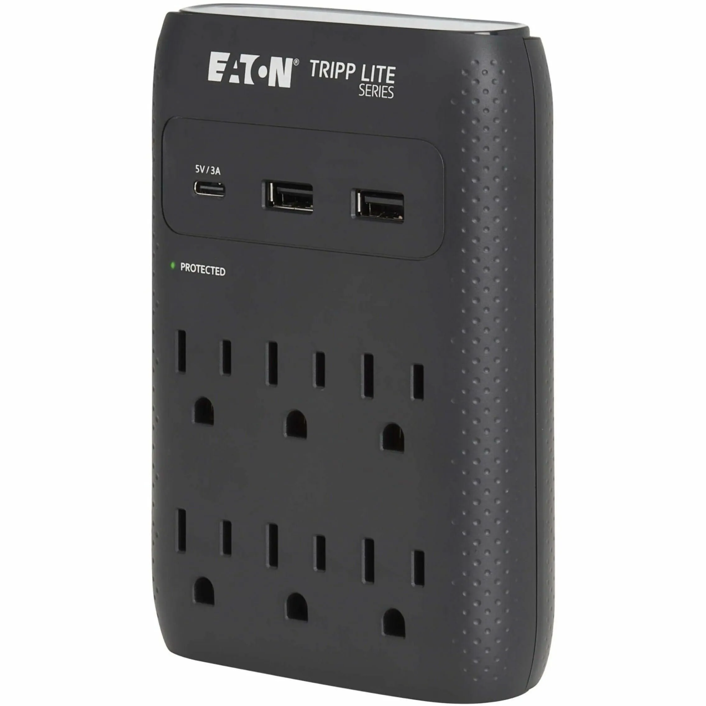 Eaton Tripp Lite Series Protect It! 6-Outlet Surge Protector - 5-15R Outlets, USB-C and USB-A Ports, 5-15P Direct Plug-In, 1080 Joules, Black