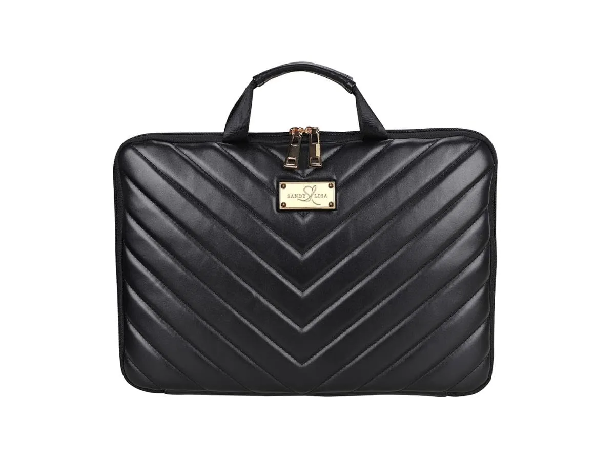 The Stylish Black Chevron Capri Sleeve is designed to accommodate laptops up to 14 inches. This trendy sleeve features a vibrant chevron print that adds a pop of style to your everyday tech accessories.