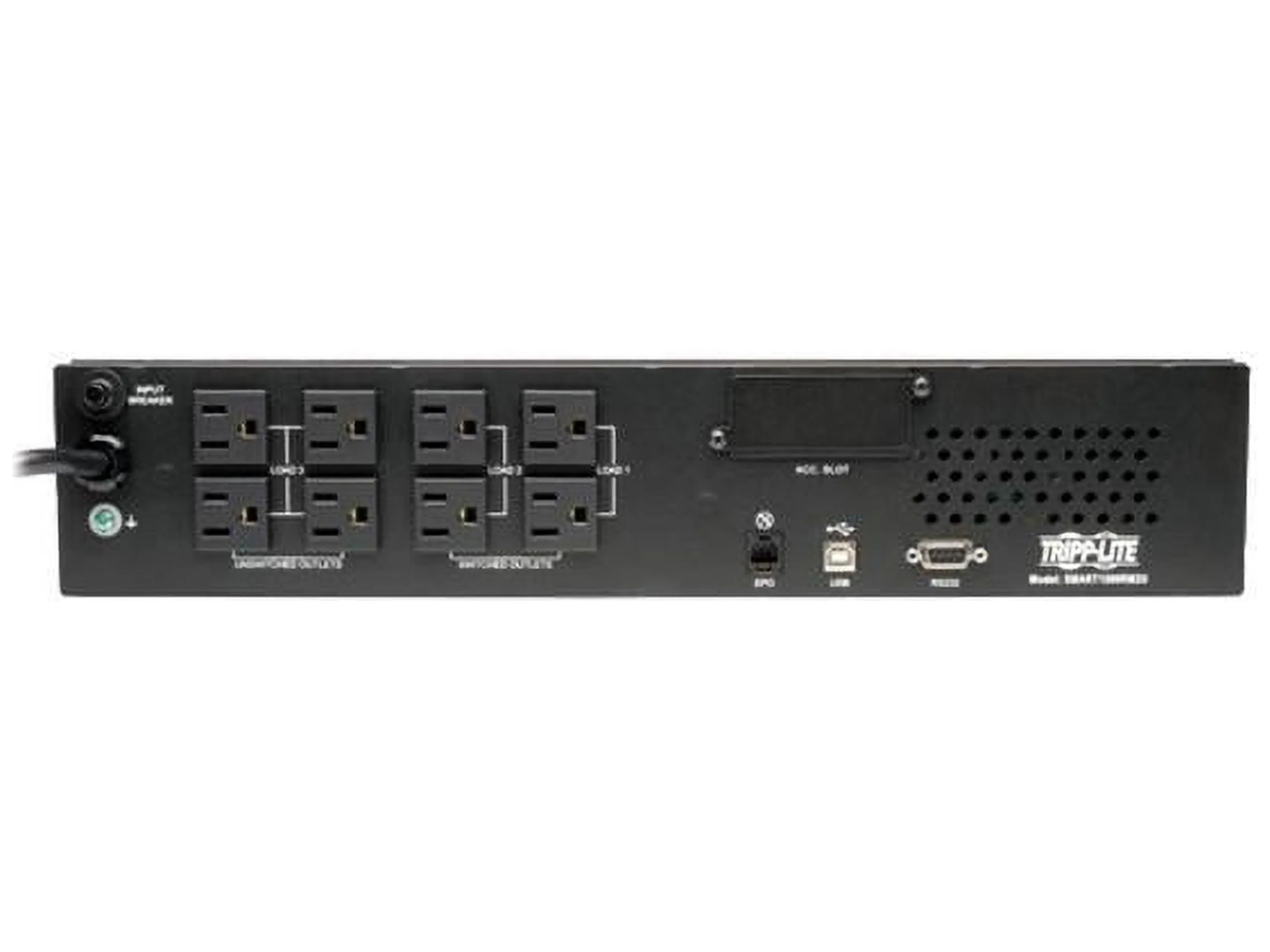 Tripp Lite's SMART 1500RM2U intelligent, line-interactive sine wave rack/tower uninterruptible power supply prevents data loss, downtime and equipment damage due to power outages, voltage fluctuations and transient surges. Requires only two rack spaces (2U) in a standard rack enclosure. Large internal batteries offer 19 minutes half load runtime and 7 minutes at full load. Maintains regulated 120V nominal output without using battery power during brownouts and overvoltages from 83 to 147V. 1500VA/1000 watt power handling capability and full time sine wave output supports networking, telecom and other sensitive electronic applications. Includes a total of 8 outlets arranged in 2 load banks that are individually controllable by a software interface to reboot select equipment on demand or shed less significant loads to extend battery runtime for more critical equipment. Supports simultaneous remote monitoring of UPS and site power conditions via built-in USB and DB9 monitoring ports. Optional SNMPWEBCARD accessory enables remote monitoring of UPS as a managed device via network management console applications. Communications ports support messaging of detailed UPS operational parameters and line power status. Includes PowerAlert UPS monitoring and unattended shutdown software with management support for an unlimited number of network UPS systems. Built-in accessory slot supports SNMP with optional SNMPWEBCARD adapter. Emergency Power Off (EPO) interface offers option for instantaneous power-off of UPS and connected equipment in the case of fire or emergency. Multi-function audible alarms and set of 5 front panel LEDs offer at-a-glance notification of UPS and line power status. Network-grade AC surge suppression protects equipment from damage and performance problems resulting from transient surges and line noise. Attractive all-black color scheme. Two year warranty with $250,000 connected equipment insurance (USA & Canada only). Key Features SMART 1500RM2U line-interactive UPS offers battery derived sine wave AC output during power outages, voltage regulation during brownouts and overvoltages, plus network grade AC surge suppression 1500VA/1000 watt power handling ability and full time sine wave output offers guaranteed compatibility with properly sized networking, telecom and other sensitive electronic devices Supports 2U rackmount installation in 4 post rack enclosures with included mounting accessories, 2 post mountable with optional 2POSTRMKITWM accessory, upright tower installation supported with optional 2-9USTAND accessory Large internal batteries offer runtimes of 19 minutes at half load (750VA/500 watts) and 7 minutes at full load (1500VA/1000 watts) Maintains regulated 120V nominal output during brownouts and overvoltages from 83 to 147V Includes 8 UPS-supported outlets arranged in 2 individually controllable load banks (2 outlets per bank) PowerAlert UPS monitoring and unattended shutdown software enables configurable network broadcast messaging, email notification, event logging and running user-defined script commands Offers simultaneous monitoring by up to 3 directly-connected devices through included USB, DB9 and SNMP* interfaces (*requires optional SNMPWEBCARD), or the monitoring of any number of additional UPS systems over IP with included PowerAlert monitoring software. Communications ports support messaging of UPS and line power status, including on battery, low-battery, power restored, AC line voltage, DC battery voltage and remaining battery capacity Supports timed inverter shutoff after unattended shutdown, activate self-test and UPS output power control for a delayed or immediate reboot of connected devices Supports Tripp Lite's WatchDog software application to restore unresponsive programs by systematically restarting applications, operating systems and ultimately rebooting completely locked computers by momentarily switching UPS power off and back on again (requires optional WATCHDOGSW) Built-in accessory slot supports SNMP with optional SNMPWEBCARD adapter Emergency Power Off (EPO) interface with cable Multi-function audible alarms and set of 5 front panel LEDs Network-grade AC surge suppression Attractive all-black color scheme UPS battery set ships fully assembled and ready for installation, no time consuming connection of internal batteries by user is necessary Two year warranty with $250,000 connected equipment insurance (USA & Canada only) Package Includes SMART 1500RM2U UPS System Mounting hardware for 4 post rackmount installation Cabling for USB & DB9 monitoring and EPO switching PowerAlert unattended shutdown and UPS/Power monitoring software Warranty information and instruction manual