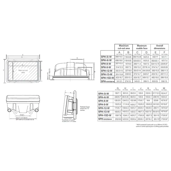 - Universal Helm Fixing - Fits pedestal rails from 25mm to 33.7mm (0.98" - 1.33"). Using a unique clamping system, the Pod can fit rail widths from 178mm (7") upwards.